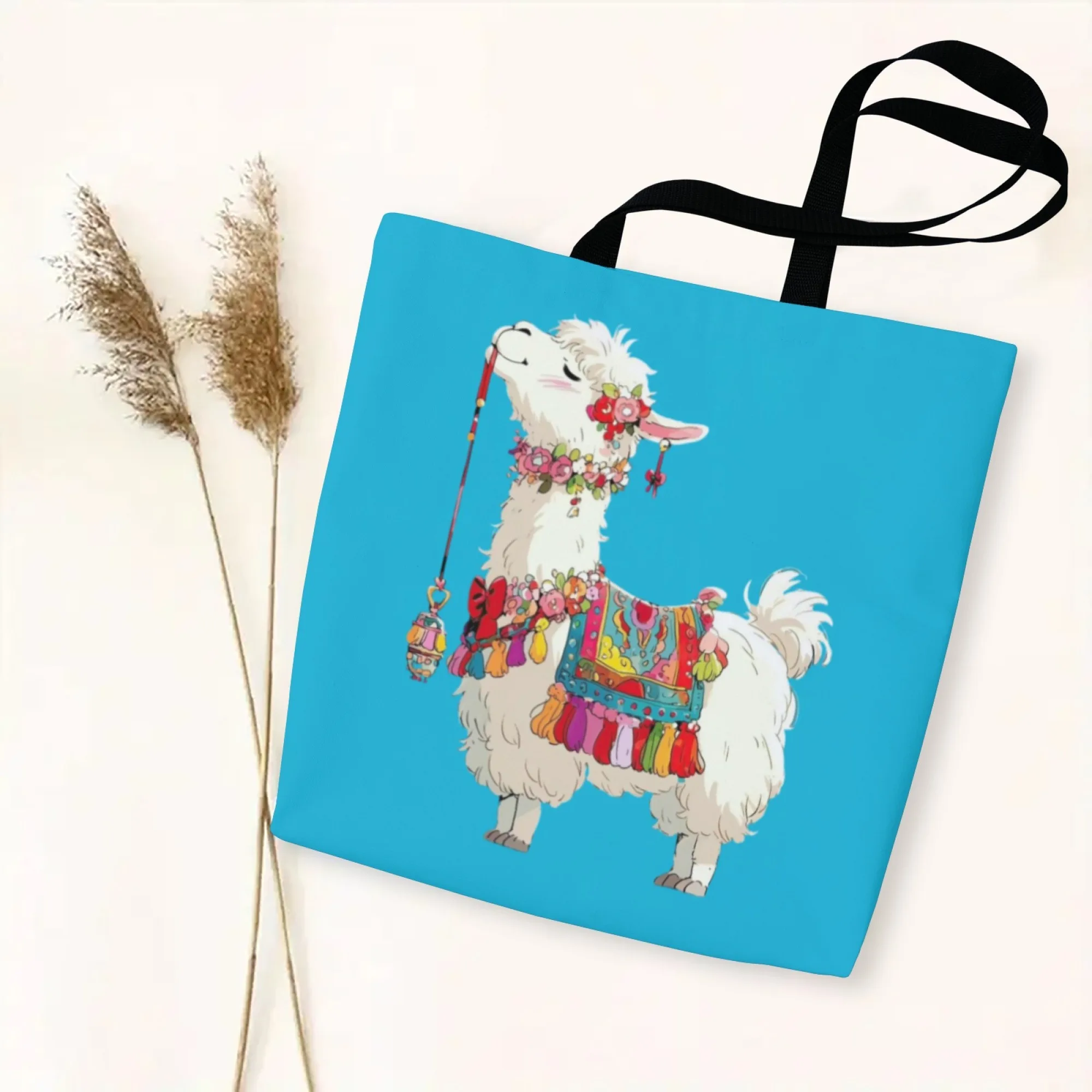 Bolso de mano elegante con estampado de Alpaca de gran capacidad, correas fijas resistentes para los hombros, perfecto para mujer, informal, para el trabajo, escuela, compras