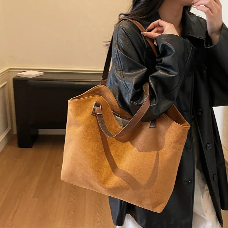 Bolso de Hombro Tipo Cubo de Gamuza Retro, Estilo Moderno, Gran Capacidad, Versátil para el Trabajo