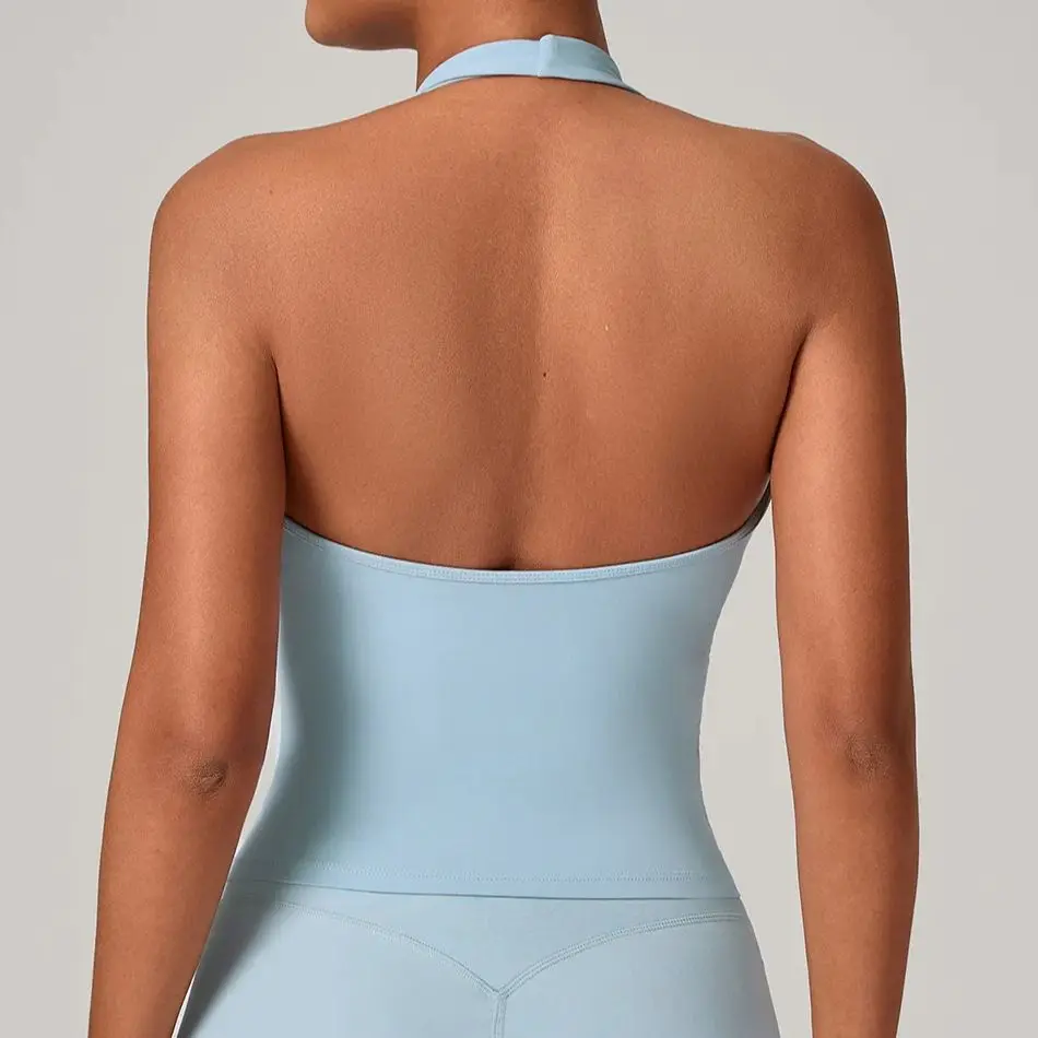 Chaleco de yoga anti-transparencias, sin copas, estilo integrado, ajustado, diseño de cuello redondo suave, top de fitness para entrenamiento.
