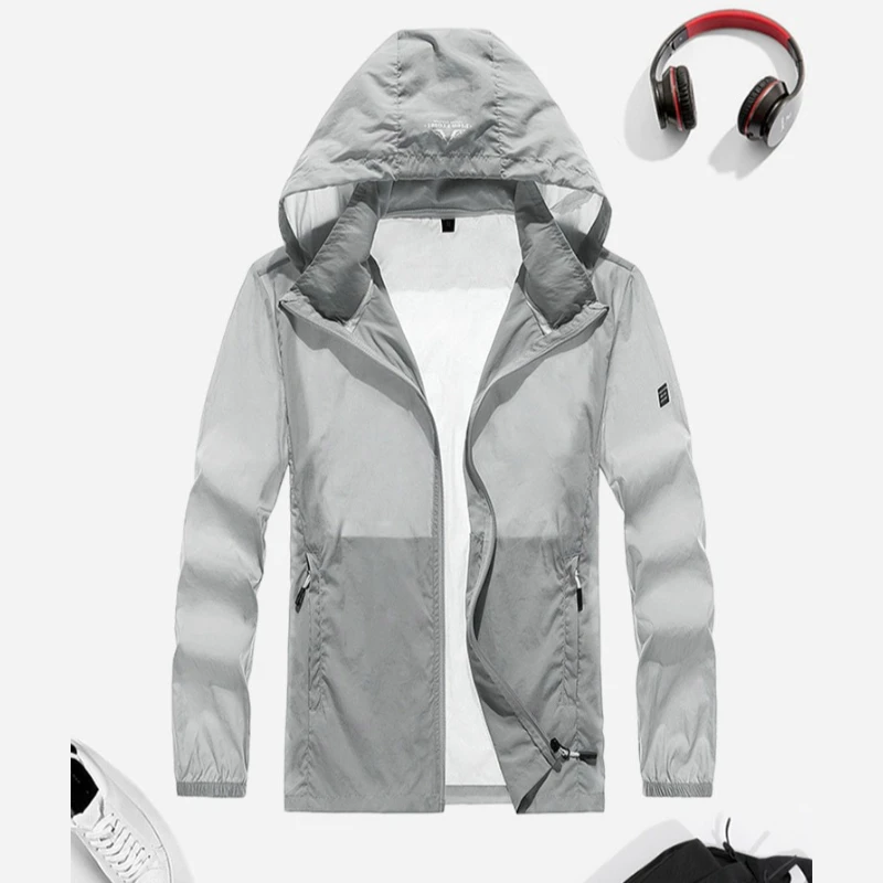 Chaqueta Cortavientos de Secado Rápido con Protección UV UPF50+ para Hombre, Chaqueta Delgada para Senderismo, Pesca y Ciclismo con Capucha y Protección Solar