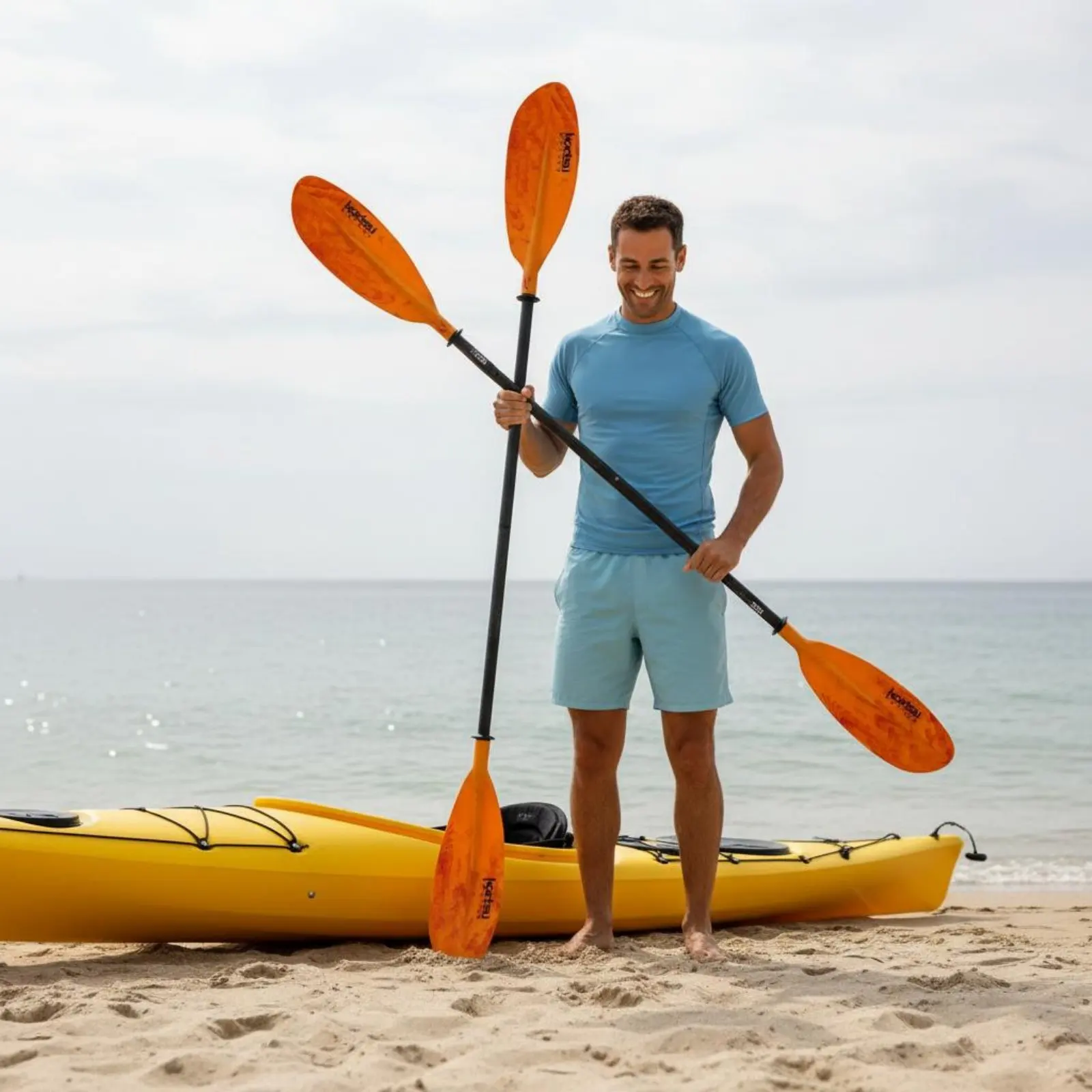 4 secciones de fibra de vidrio azul, eje ligero, paleta SUP, Kayak, tabla de Paddle, accesorio, logotipo OEM inflable