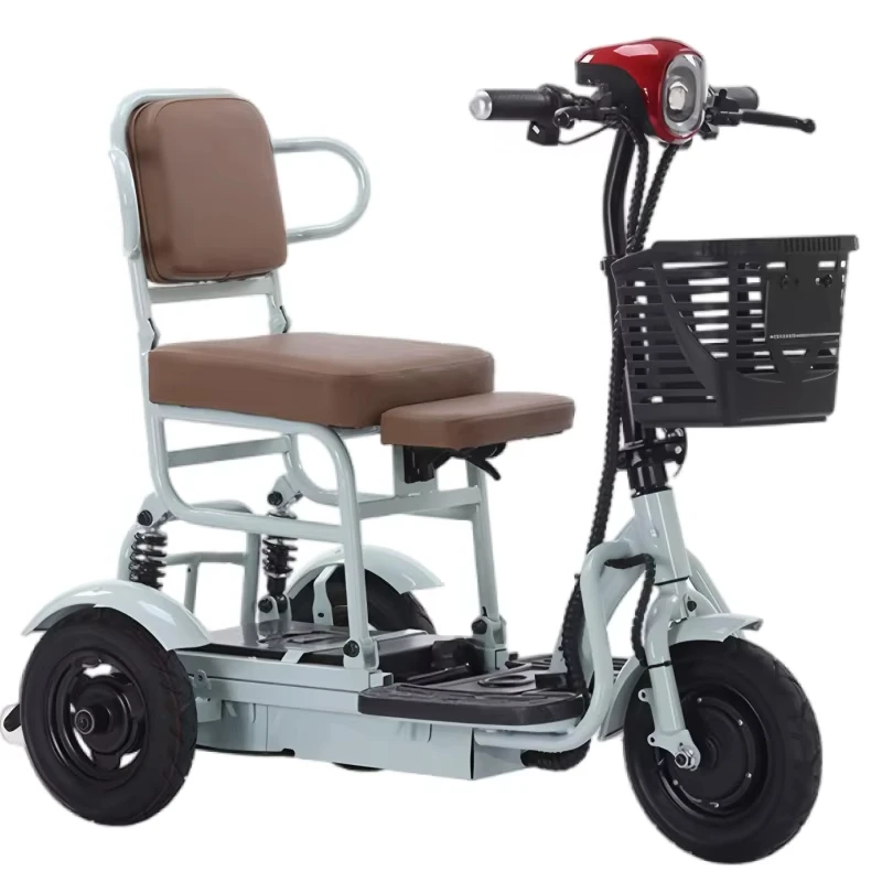 Triciclo eléctrico pequeño, manillar plegable para familia, adultos y personas mayores con cesta trasera, Scooter Eléctrico de movilidad de 36V, ligero
