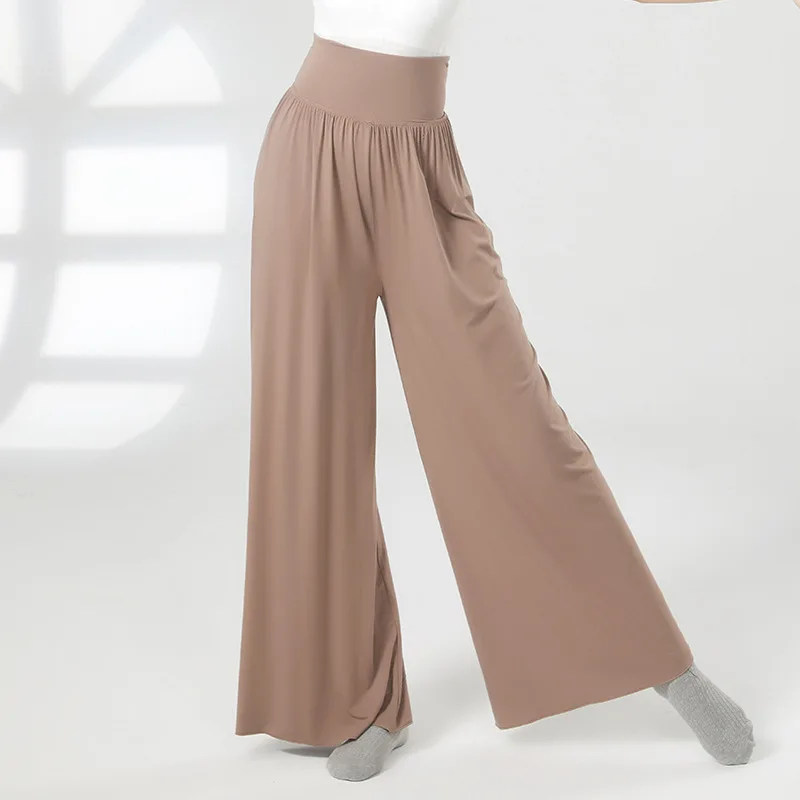 Pantalones de baile lírico para mujer, pierna ancha, danza moderna, Ballet, cintura alta, niñas, adultos, danza clásica, pantalones de Jazz