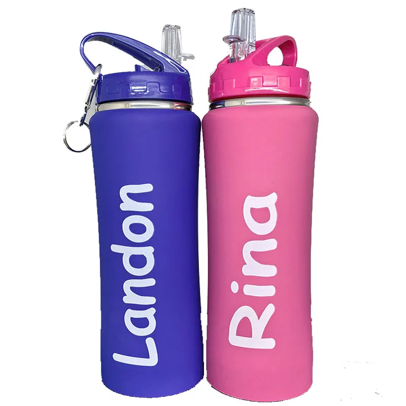 Botella de agua de acero inoxidable con aislamiento personalizada con pajita, botella de fitness/ciclismo grabada, regalo perfecto para hombres y mujeres
