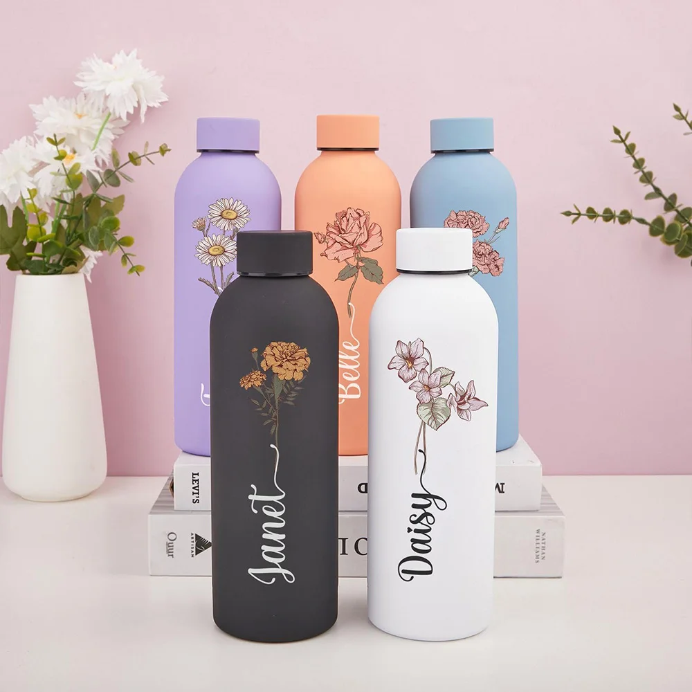 Botella de agua floral personalizada, botella aislada portátil para deportes al aire libre, para acampar, hacer senderismo y viajar.