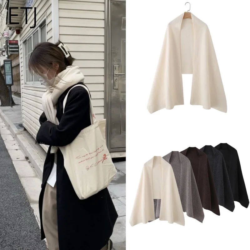 ETJ 2025 nuevo producto Otoño/Invierno para mujer, bufanda de punto suave y cálida de color sólido básico simple para mujer, chal opciones multicolores