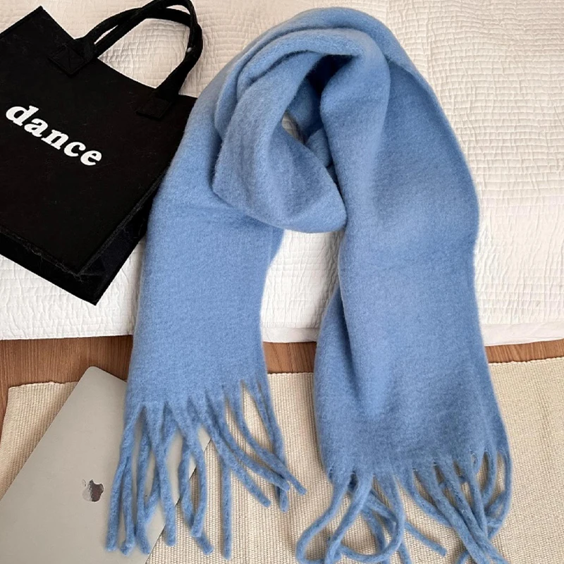 Bufanda de Cachemira de imitación azul neblina para mujer, nueva bufanda orientada con atmósfera de otoño e invierno, bufanda para mantener el calor, 2025
