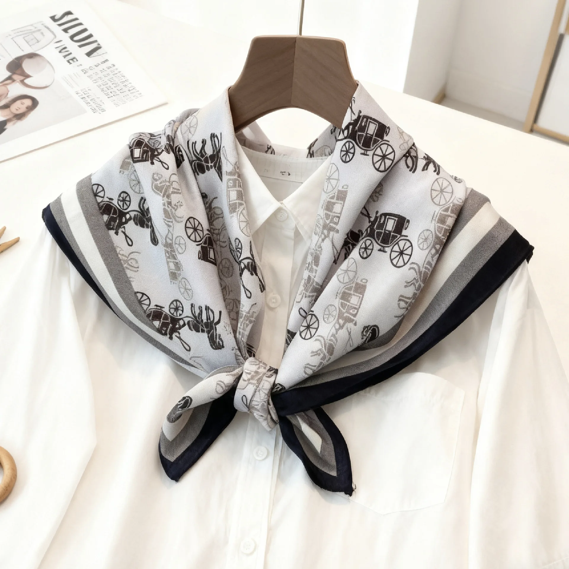 Pañuelo de Cuello Cuadrado de Algodón Puro de Diseño de Lujo para Mujer, Pañuelo para el Cabello con Diseño Estampado, Pañuelo de Moda para Chicas
