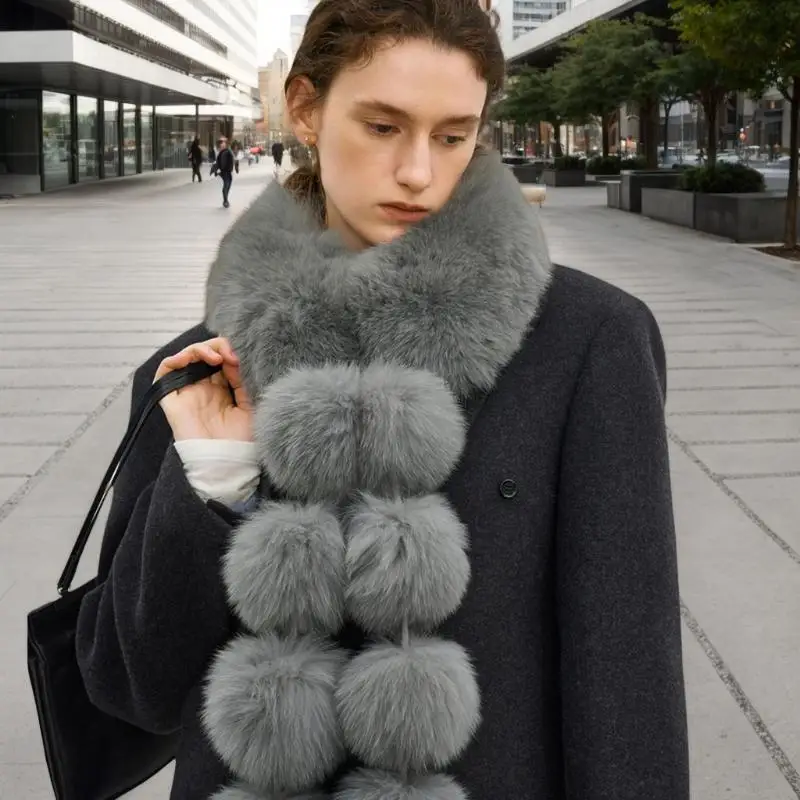 Bufanda Larga de Piel Sintética de Zorro para Mujer, Bufanda Cálida y Suave para Invierno, Bufanda Informal para Mujer, Calentador de Cuello para Exteriores