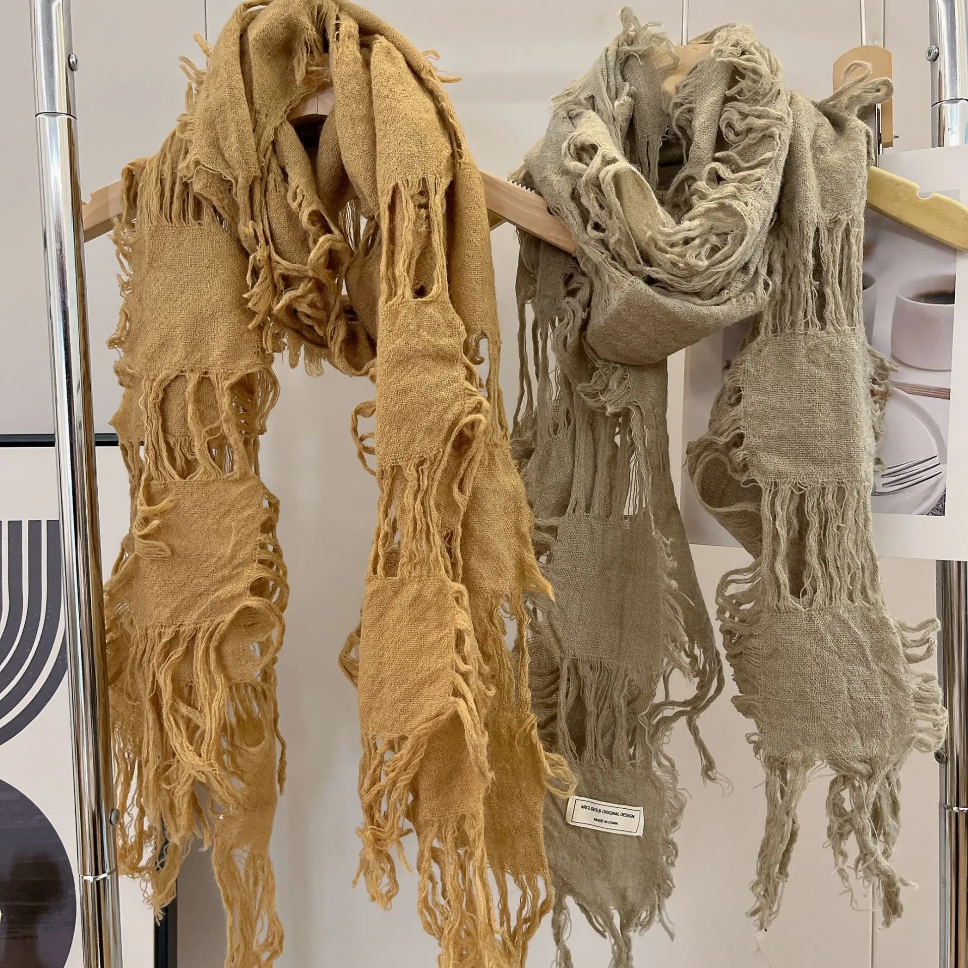 2025 nueva moda rasgado agujero borla Vintage bufanda hombres mujeres japonés otoño Retro irregular Hip Hop Punk Y2k calentador de cuello 4 colores