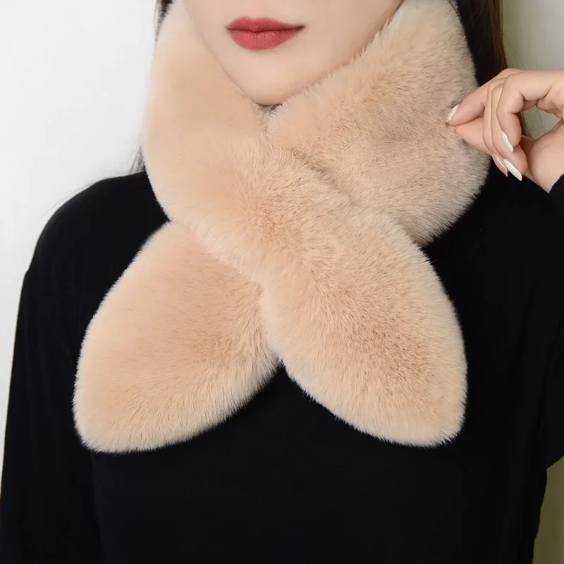 Orejeras versátiles y elegantes, calentador de cuello de piel cálida y esponjosa, bufanda a prueba de viento y frío para mujer, temporada de invierno para mujer