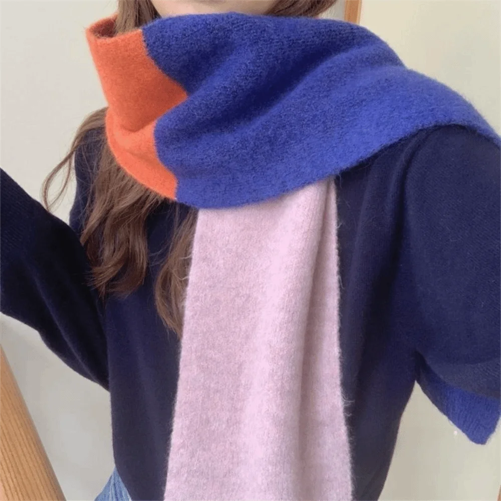 Envolturas suaves, bufanda de Color de retales, calentador de cuello, chal de Cachemira de lana, bufanda gruesa de cuello de invierno de estilo coreano para exteriores