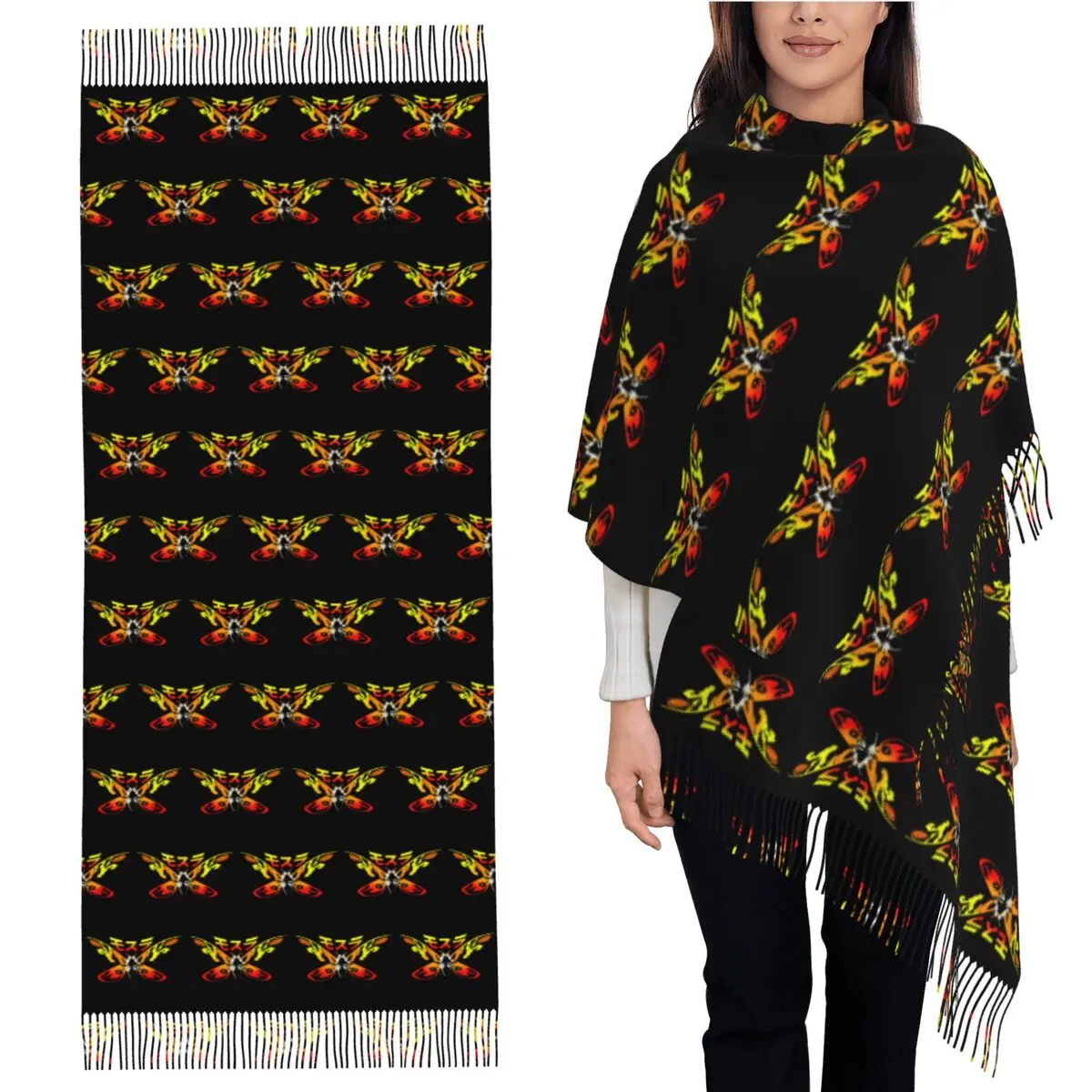 Mosura Mothra-bufanda exclusiva con borlas para mujer, chales y chales suaves y cálidos, chal grande para otoño e invierno