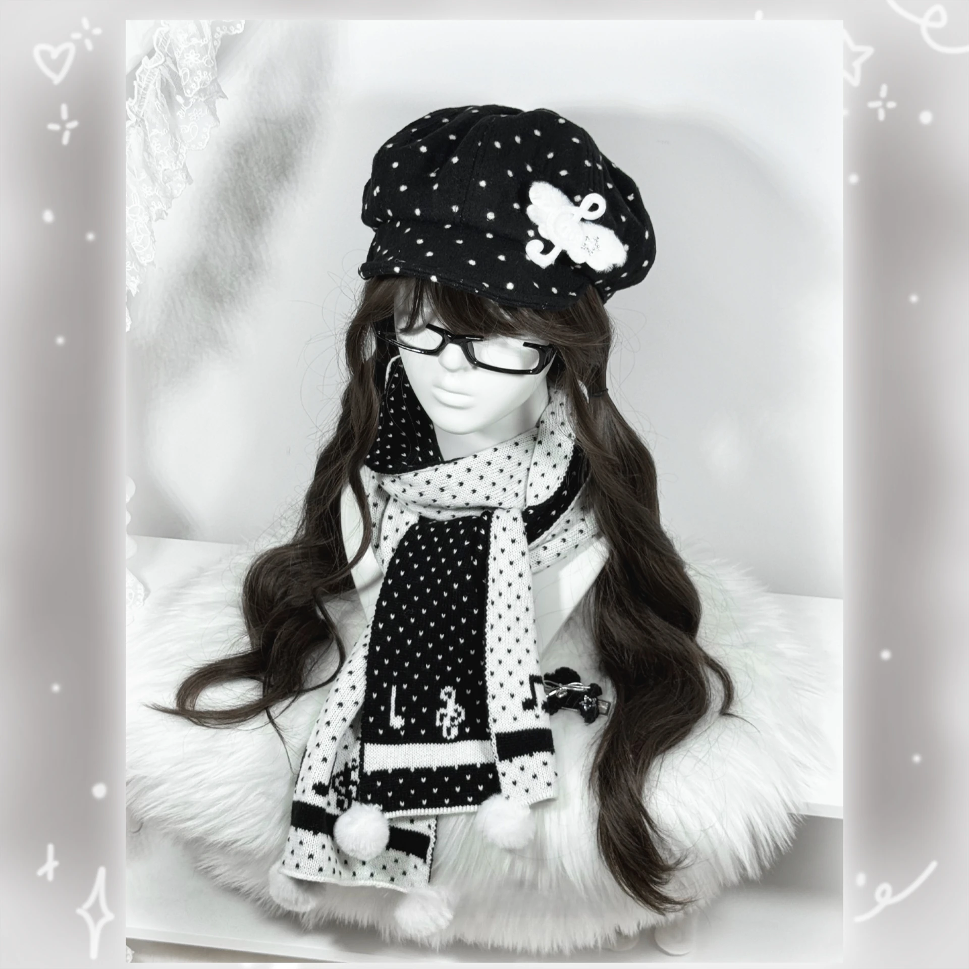 Bufanda de Lana con Estampado de Lunares Estilo Y2K, Bufanda Tejida con Bola de Lana, Estilo Peplum, Cálida, Dulce y Femenina