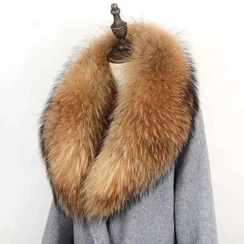 Nuevo Cuello de piel sintética para mujer, chal cálido para invierno, bufanda, cuello de piel de mapache de imitación, chaquetas, abrigo, sombrero, tira, cuello de piel falsa de gran tamaño