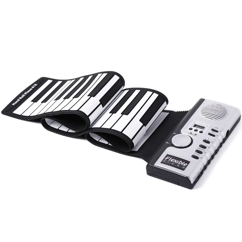 Mini Piano enrollable de 61 teclas, teclado suave plegable portátil de silicona, Piano Electrónico, instrumento Musical blanco y negro para regalos