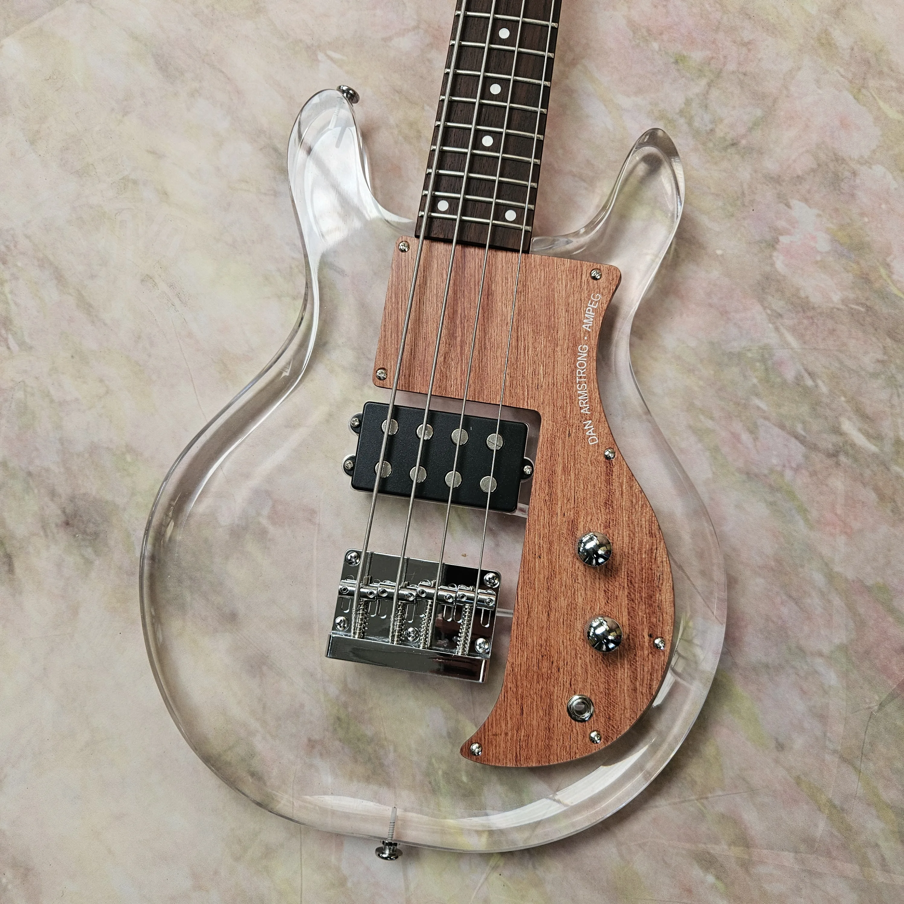 Bajo Eléctrico Acrílico de Cuatro Cuerdas con Pastilla H, Cuerdas Fijas, Cuerpo de Arte Abstracto Moderno para Músicos Avanzados
