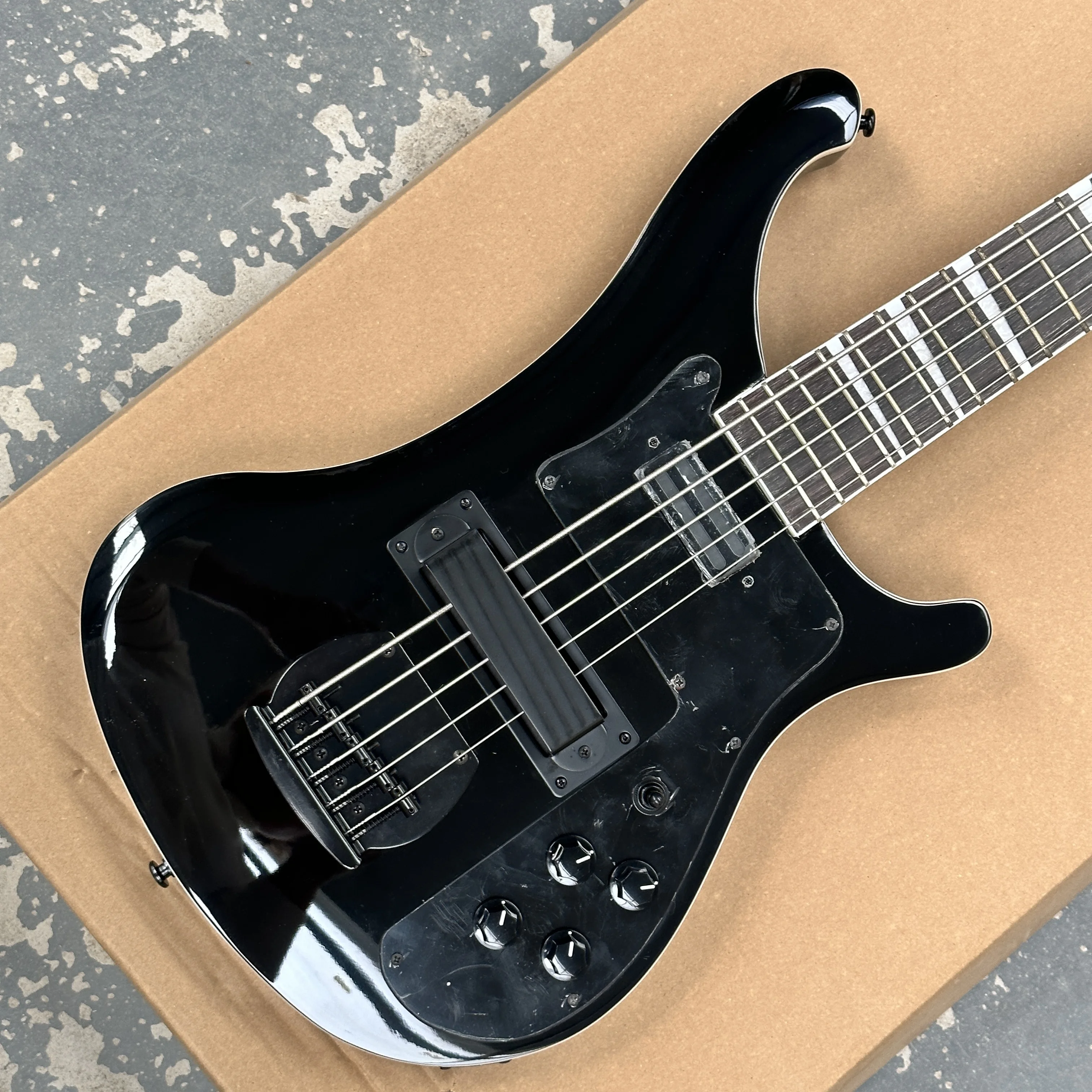 Bajo de hacha para zurdos alienígena, bajo de 4 cuerdas, herrajes cromados, bajos eléctricos