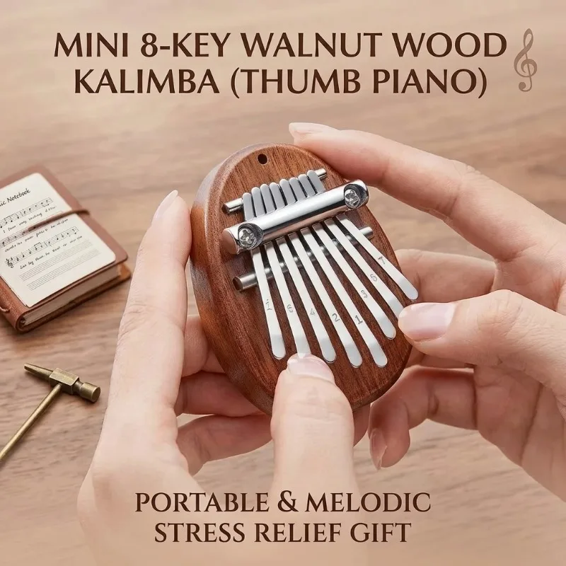 Mini Kalimba de 8 Teclas, Piano de Pulgar de Madera con Cordón, Instrumento Musical, Regalo para Amantes de la Música, Cumpleaños, San Valentín
