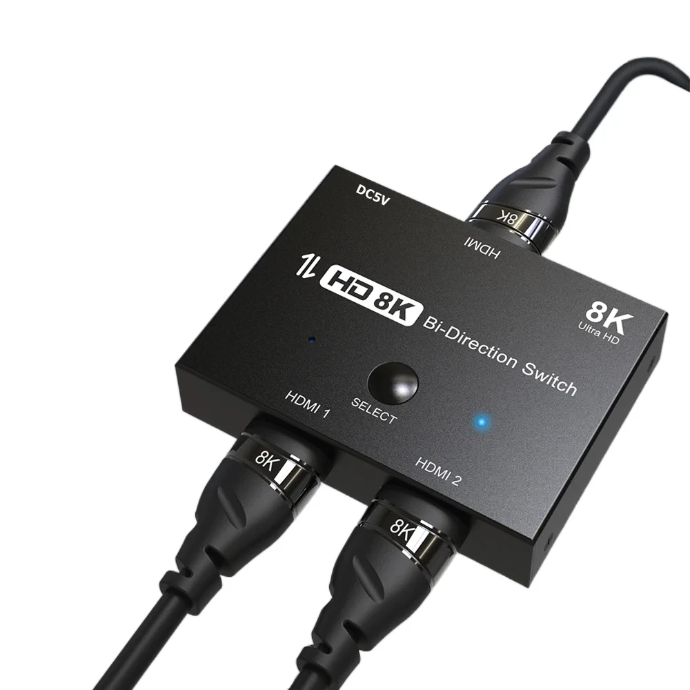 Conmutador HDMI 2.1 Bidireccional 8K@60Hz, Divisor 2 en 1 Salida, 1 Entrada 2 Salidas, Conmutador Ultra HD 4K@120Hz para PS5, Xbox, Roku, Apple TV
