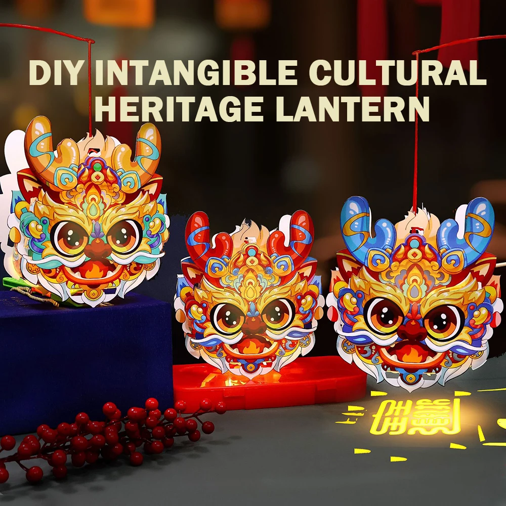 Linterna brillante de estilo chino, linternas luminosas de mano con cabeza de dragones, manualidades ligeras hechas a mano para el Festival de Primavera