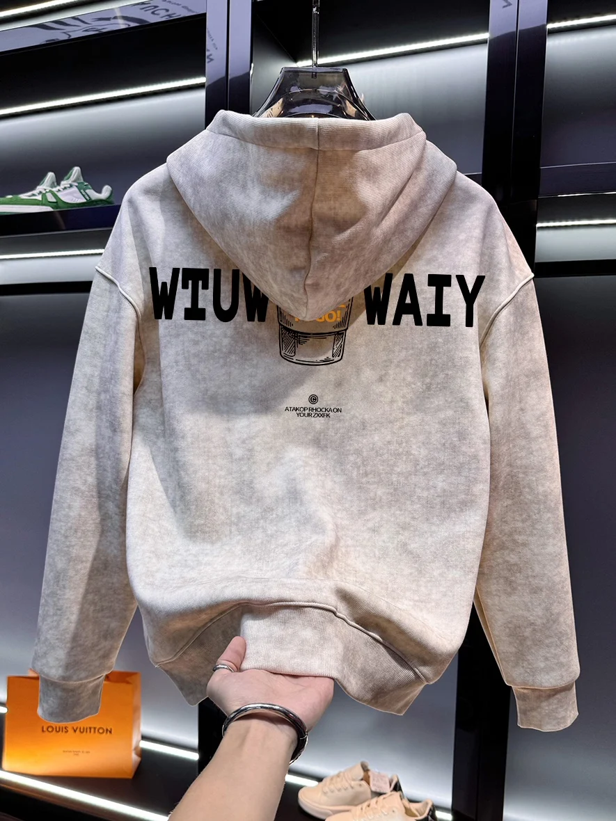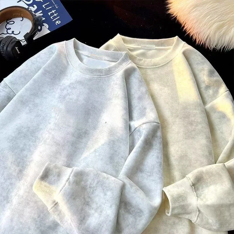 Suda Hoada con Cuello Redondo, Forro Polar, Tie Dye, Cseta Interior para Hombre, Moda Otoño Invierno, para Ir al Tra...