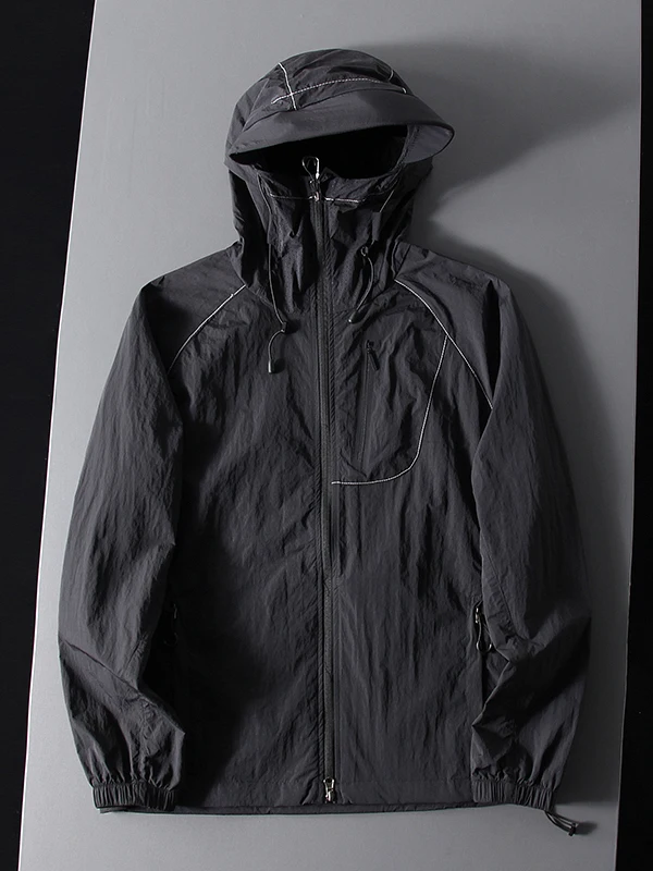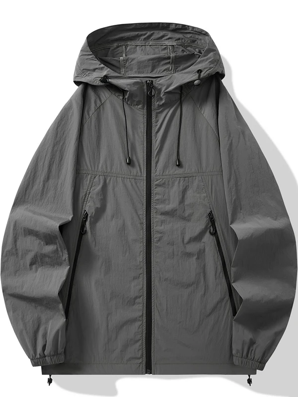 Chaqueta de protección solar de verano ra y hoada para hombre, con capucha, de nailon, con cierre de cremallera de una ...