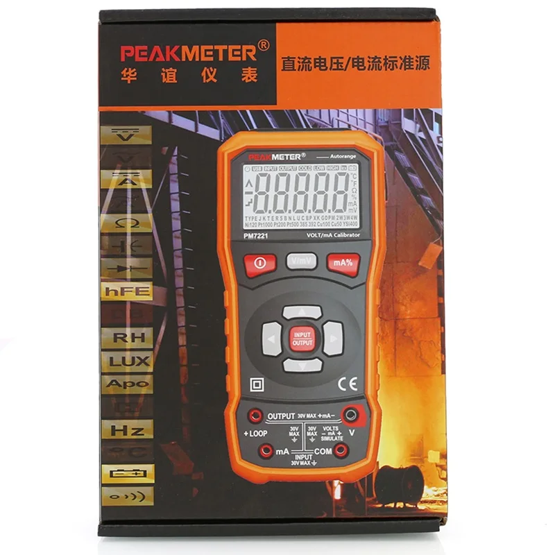 PEAKMETER PM7221 Calibrador de procesos multifunción portátil Medición de voltaje Rendimiento estable, Calibratorn de proceso de 0-24 mA