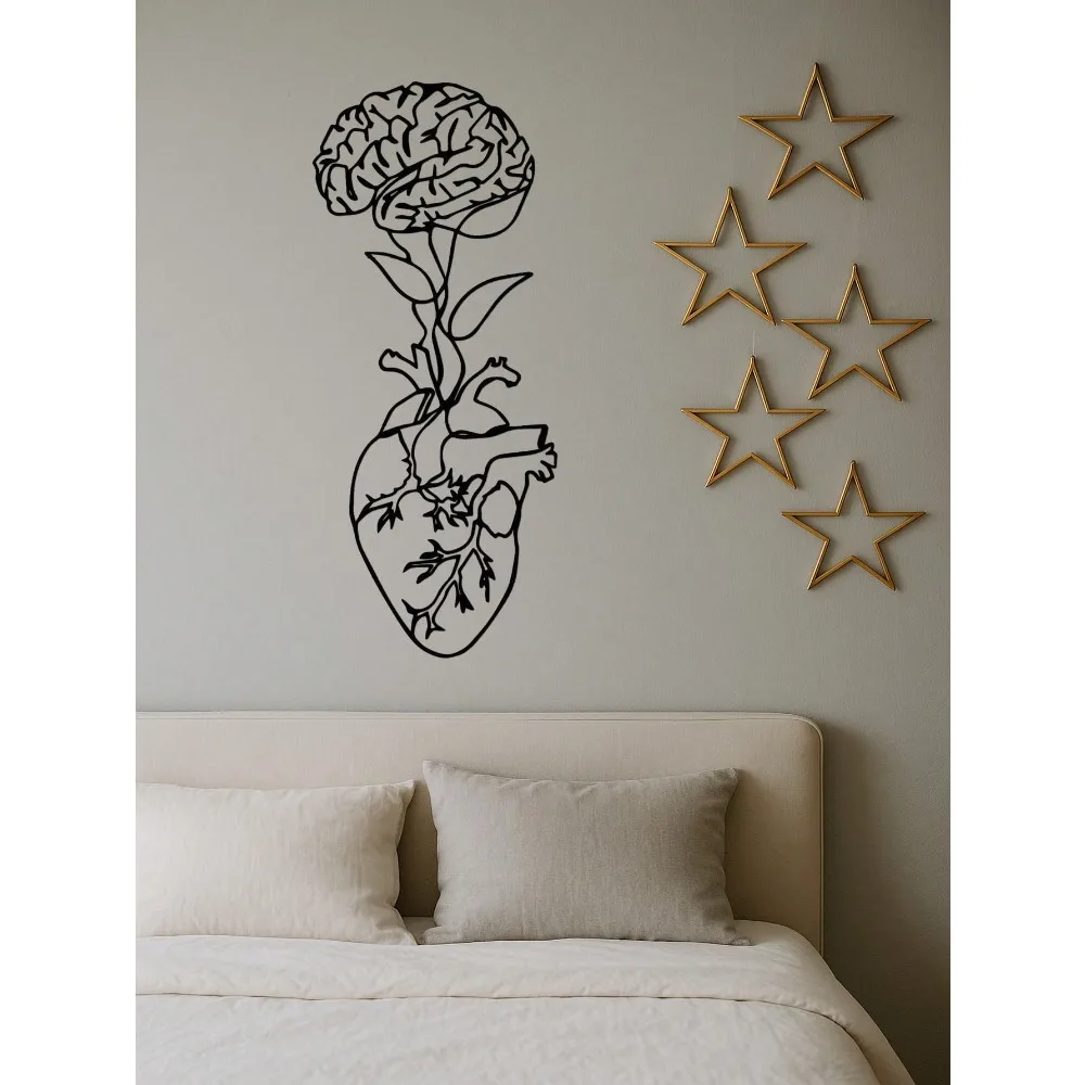 Escultura de corazón y cerebro de arte de pared de metal, regalo moderno de decoración del hogar a prueba de herrumbre interior