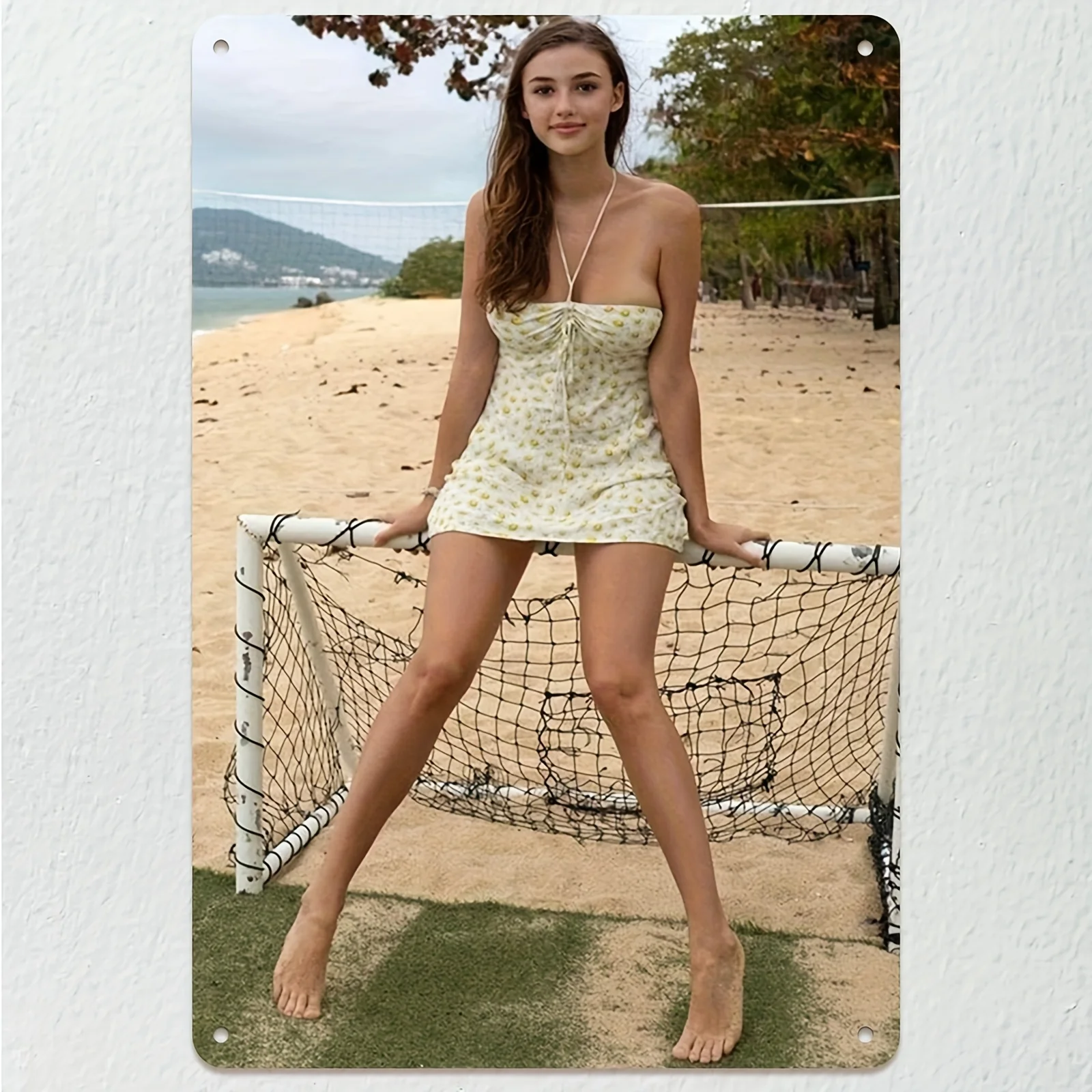 Yehaiker - Arte de pared con estampado floral amarillo en 2D, decoración costera de 8 x 12 pulgadas para sala de estar, dormitorio, oficina, letrero de aluminio Girl Socc