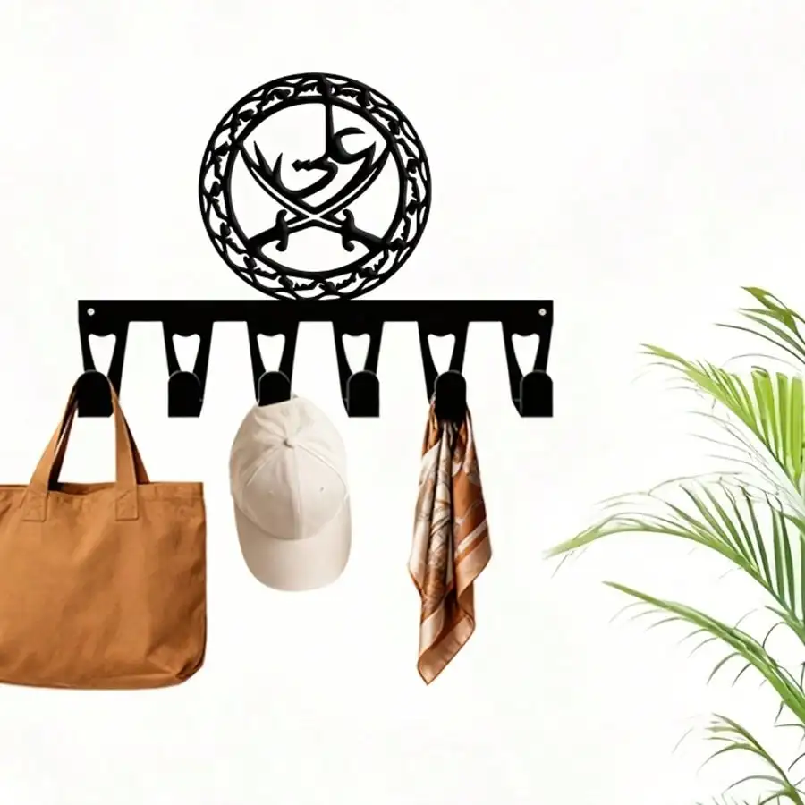 Porta llaves con caligrafía árabe, 6 ganchos, montaje en pared, decoración moderna de hierro para entrada y pasillo