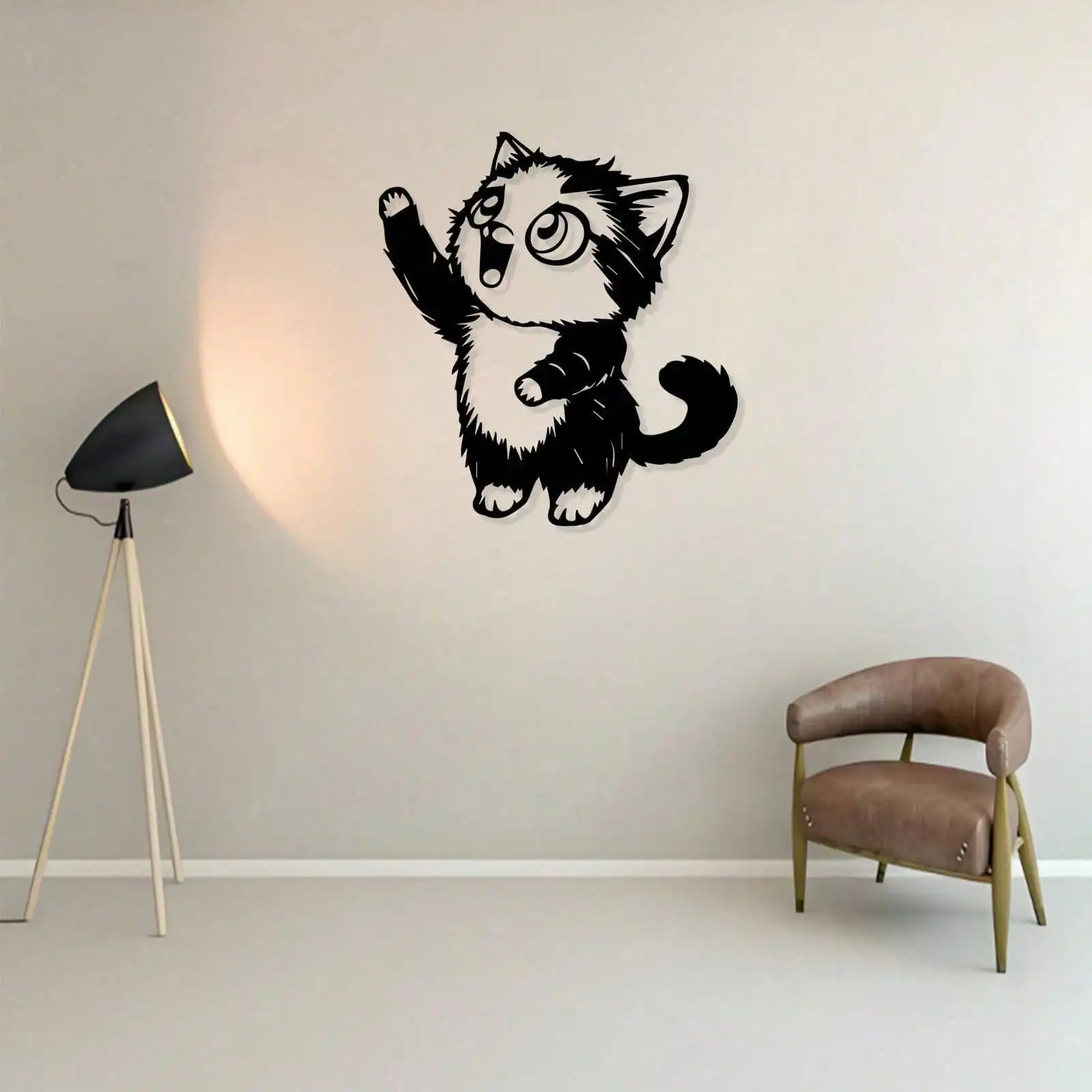 Arte de pared vintage de gato de hierro - Decoración de gato espacial negro de metal para dormitorio y Navidad