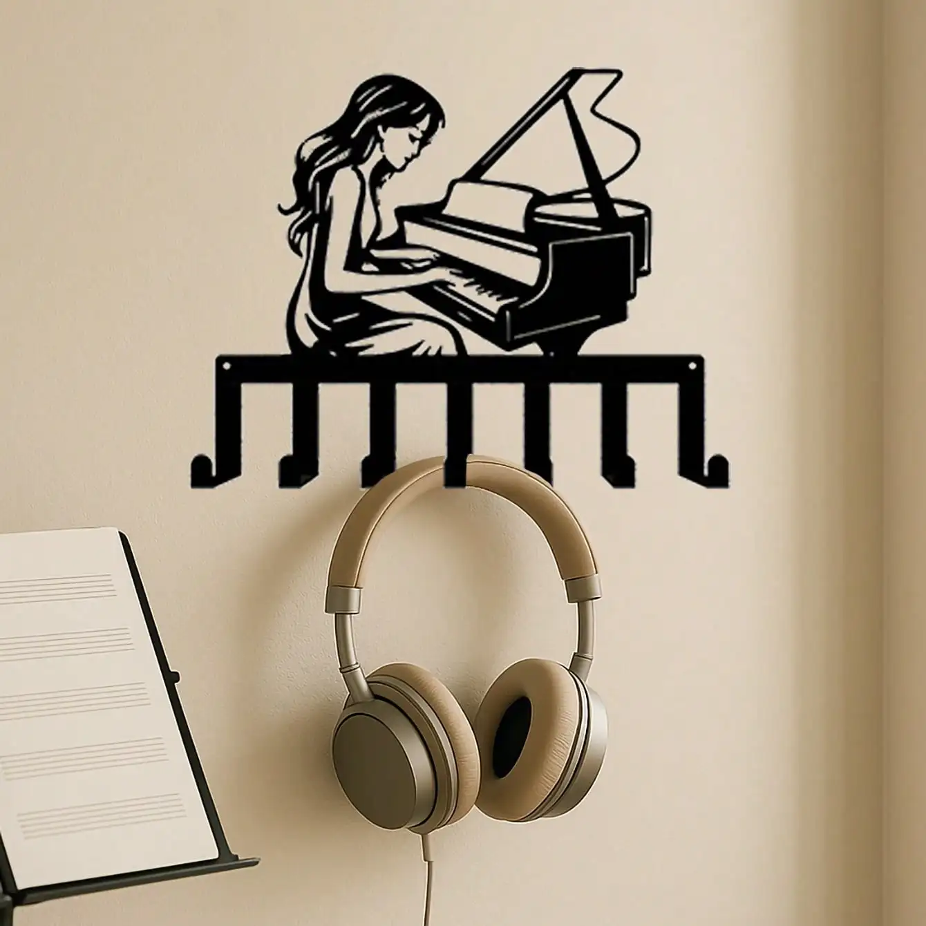 Moderno Gancho de Pared Metálico con Forma de Mano de Piano y 7 Ganchos, Perchero Minimalista de Hierro para Llaves, Bolsos, Dormitorio, Sala de Estar, Entrada