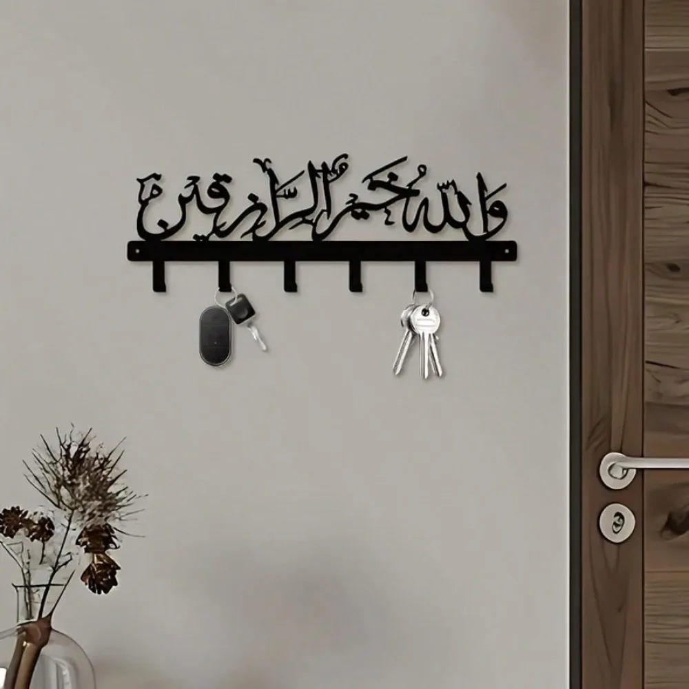 Porta Llaves Islámico de Pared con Bendición Árabe, Protege Nuestra Casa, Gancho de Hierro, Regalo de Inauguración de Casa, Regalo de Eid