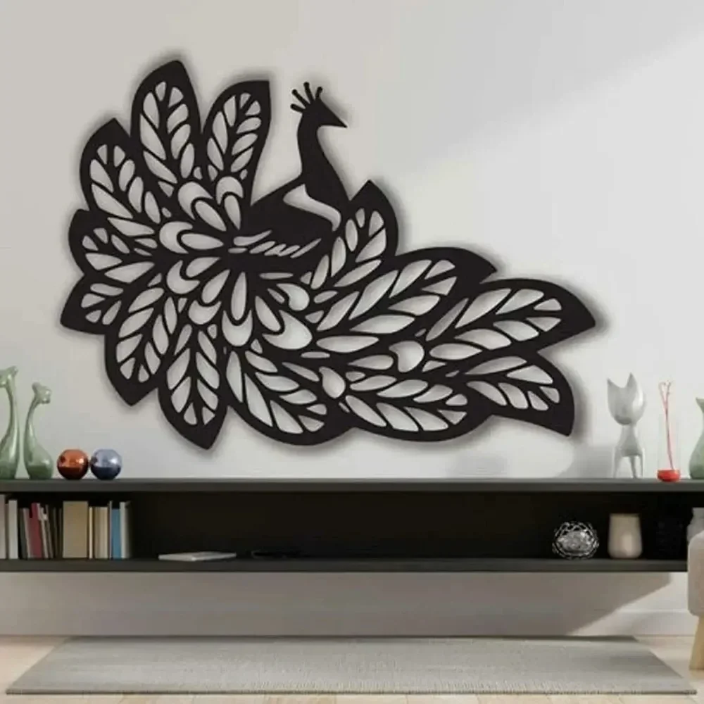 Vistyle 3D Pavo Real Metal Arte de la pared Decoración Escultura de hierro Hogar Sala de estar Etiqueta de la pared