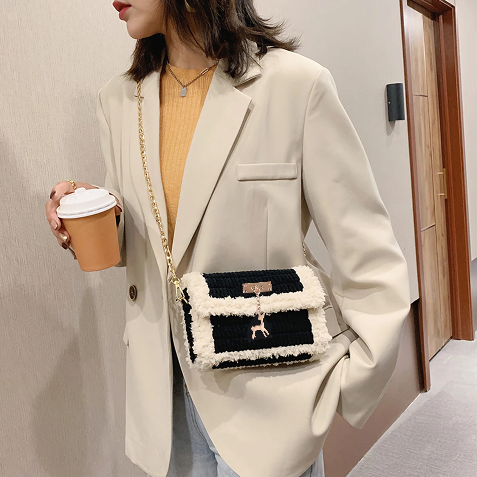 Bolso de lana de Islandia Diy, material de bolso cuadrado diagonal tejido a mano. Regalos prácticos caseros para novias y novias.