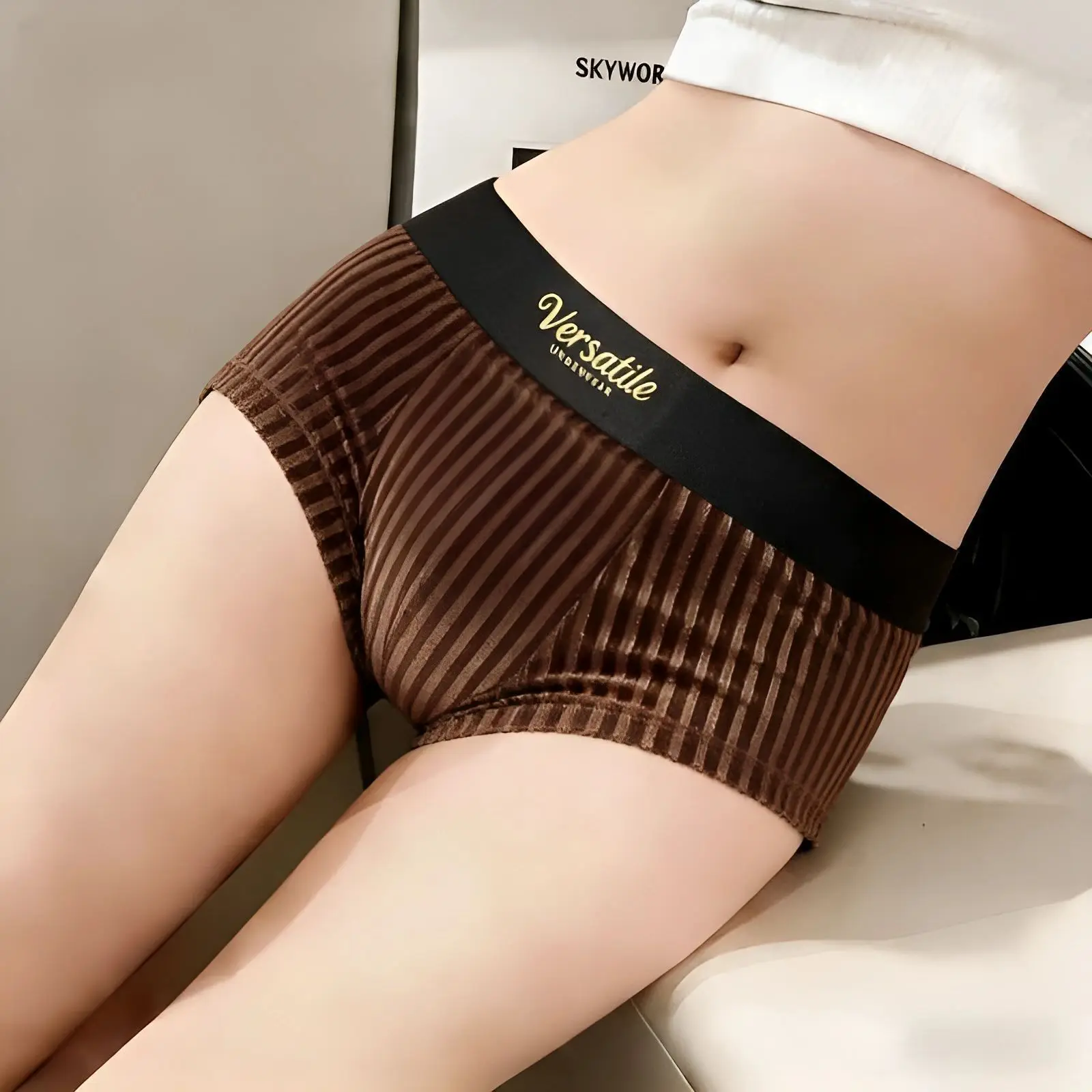 Plones Aro de Textura de Terciopelo para Hombre, Transpirables y Cómodos, Plones Cortos de Moda con Rayas para Otoño ...