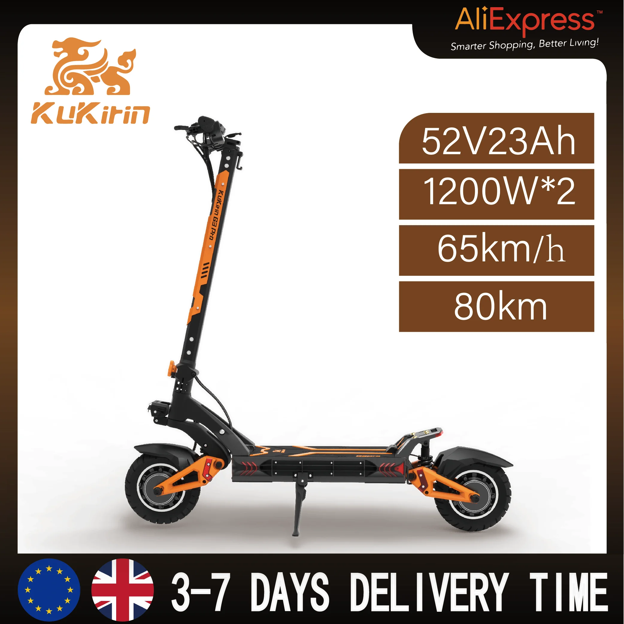 Patinete Eléctrico KuKirin G3 Pro, Motor de 2400W, Batería de 52V23Ah, Amortiguadores Dobles, Patinete Eléctrico para Adultos, Llantas de 10 Pulgadas, Velocidad Máxima de 65Km/h