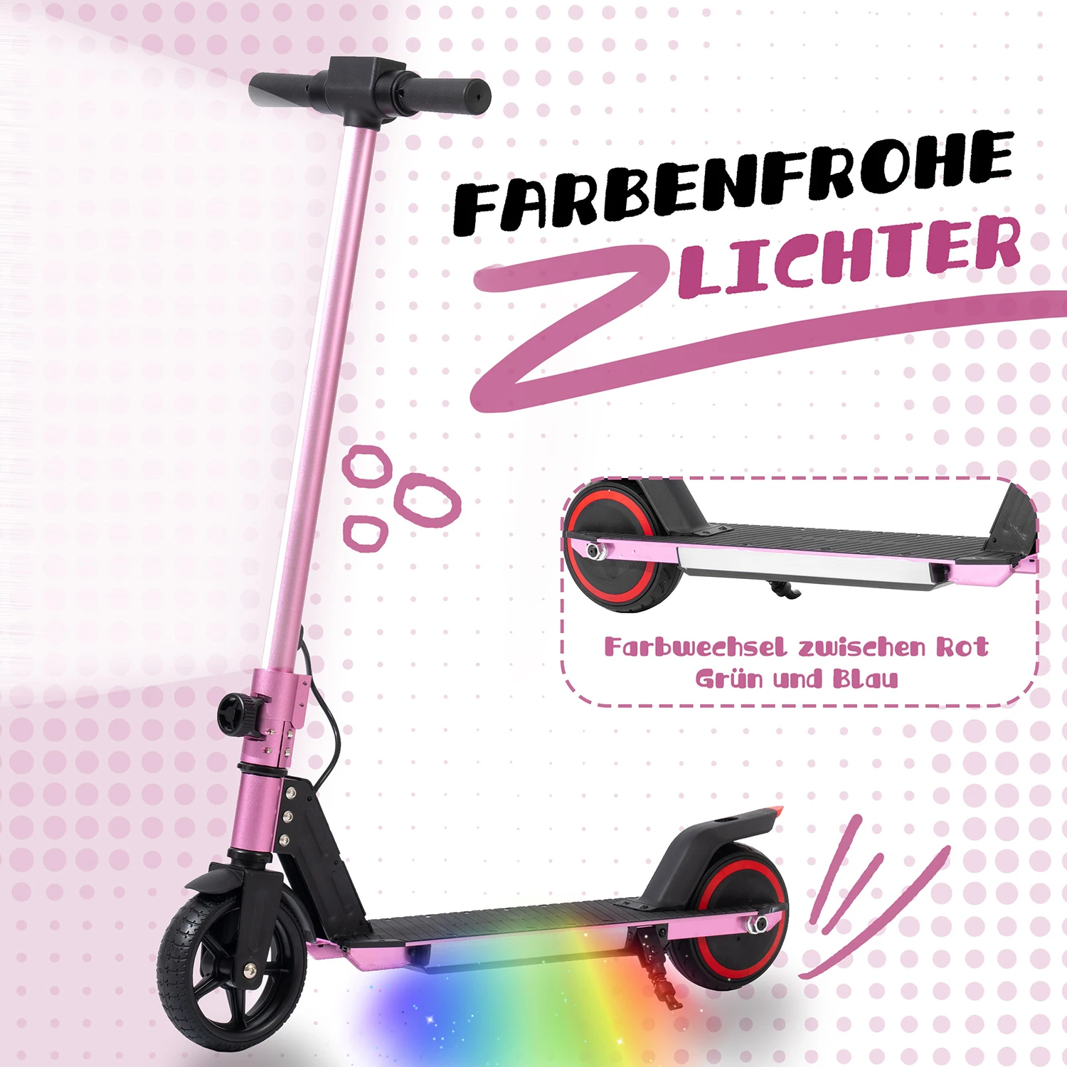 Patinete Eléctrico Plegable Vankel para Niños, Motor de 150W, Batería de 60Wh, Patinete Eléctrico de 6.5 Pulgadas para Niños y Niñas, Ligero y Seguro