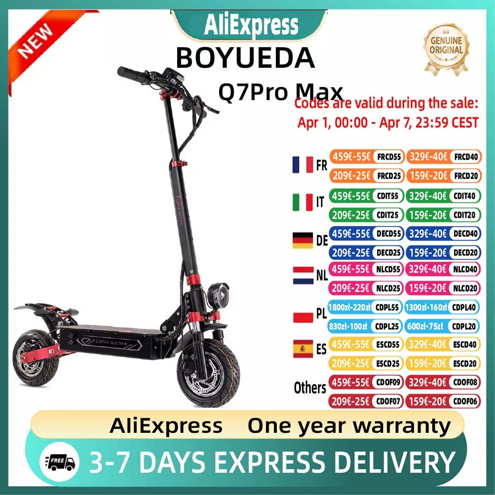 Scooter Eléctrico BOYUEDA Q7Pro Max, 10 Pulgadas, Motor Dual de 1600W, Batería de 52V28A, Scooter Eléctrico para Adultos, Todoterreno, para Desplazamientos Urbanos