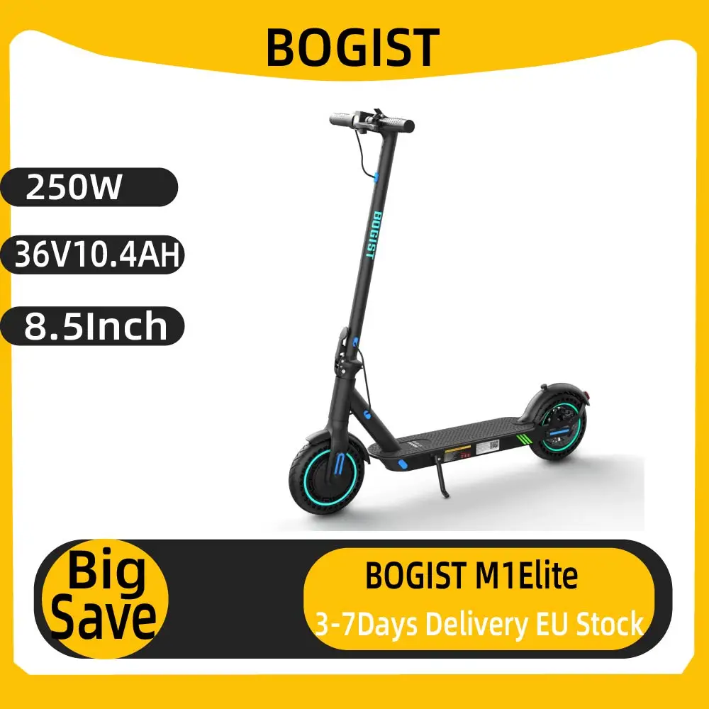 BOGIST M1Elite, Scooter Eléctrico Plegable Todoterreno con Motor de 250W, Batería de 36V 15AH y Ruedas de 8.5 Pulgadas