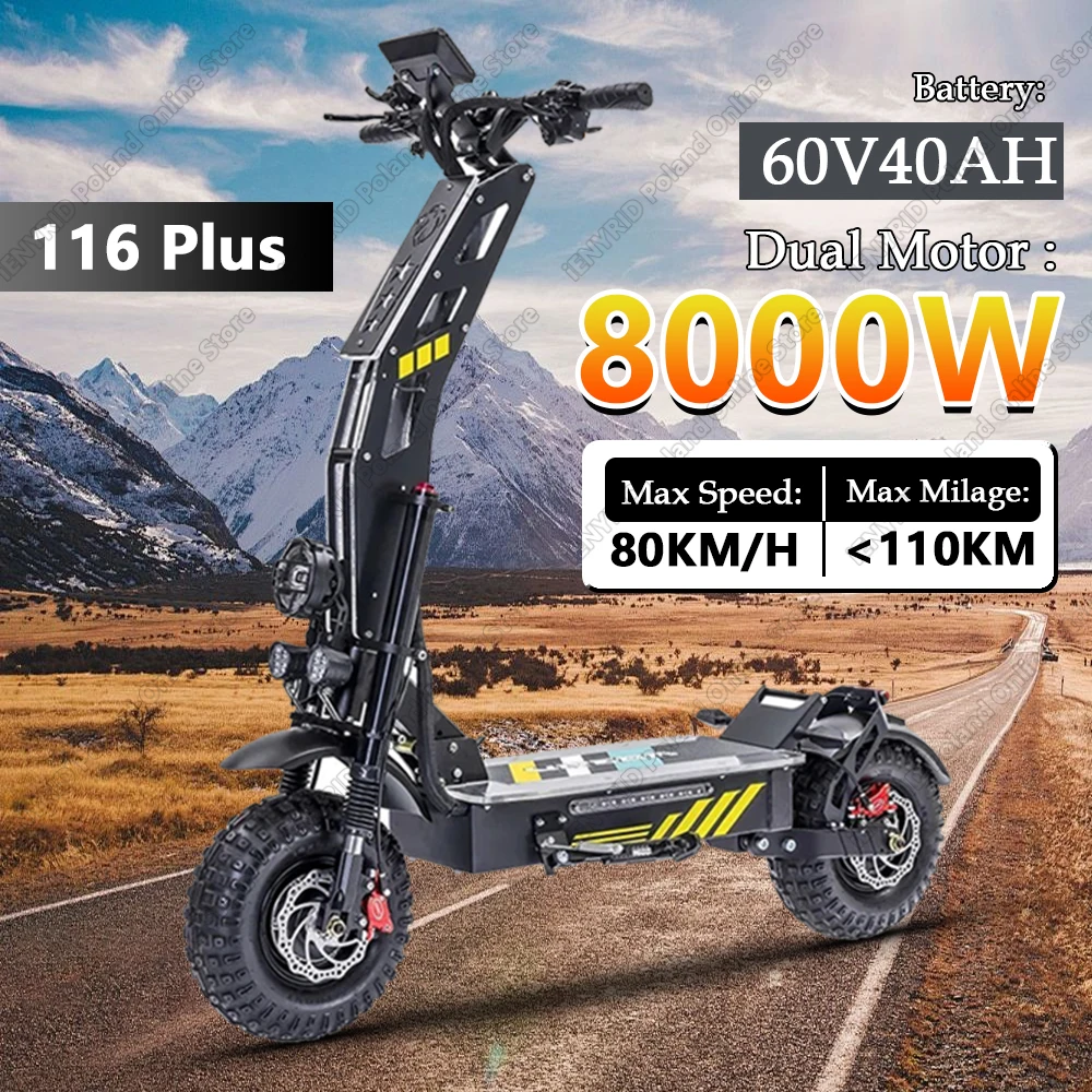 Scooter Eléctrico T116 Plus, Potente Motor Dual de 8000W, 60V40AH con Señal de Giro, Scooter Eléctrico con Llantas de 14 Pulgadas y Freno Hidráulico