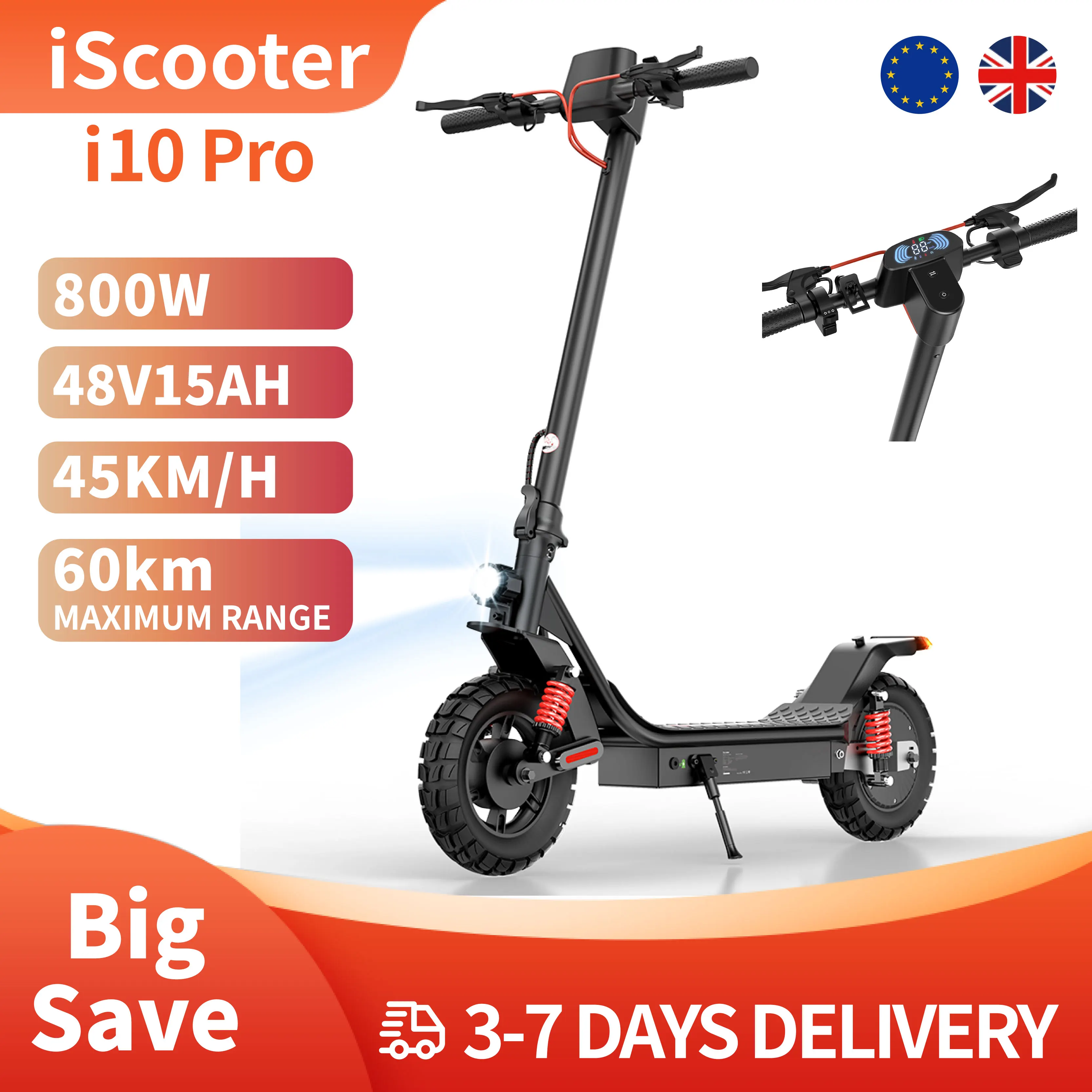 iScooter i10Pro Patinete Eléctrico de 10 Pulgadas, 800W, 48V15Ah, 45 km/h, Autonomía de 60 km para Adultos, con la Aplicación