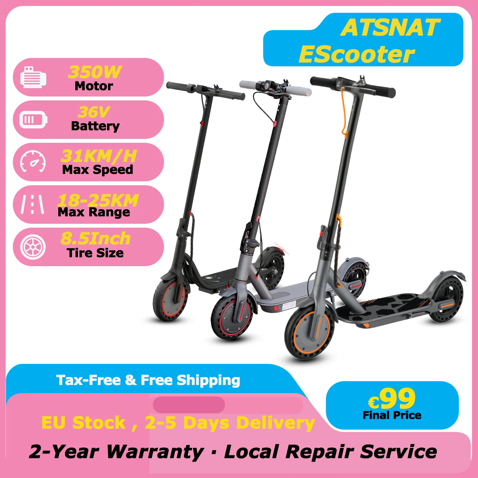 Patinete eléctrico ATSANT para adultos, 31/50 km/h, 350/1200 W, neumático de 8.5/10 pulgadas, 20-50 km de autonomía, patinete eléctrico para adultos.