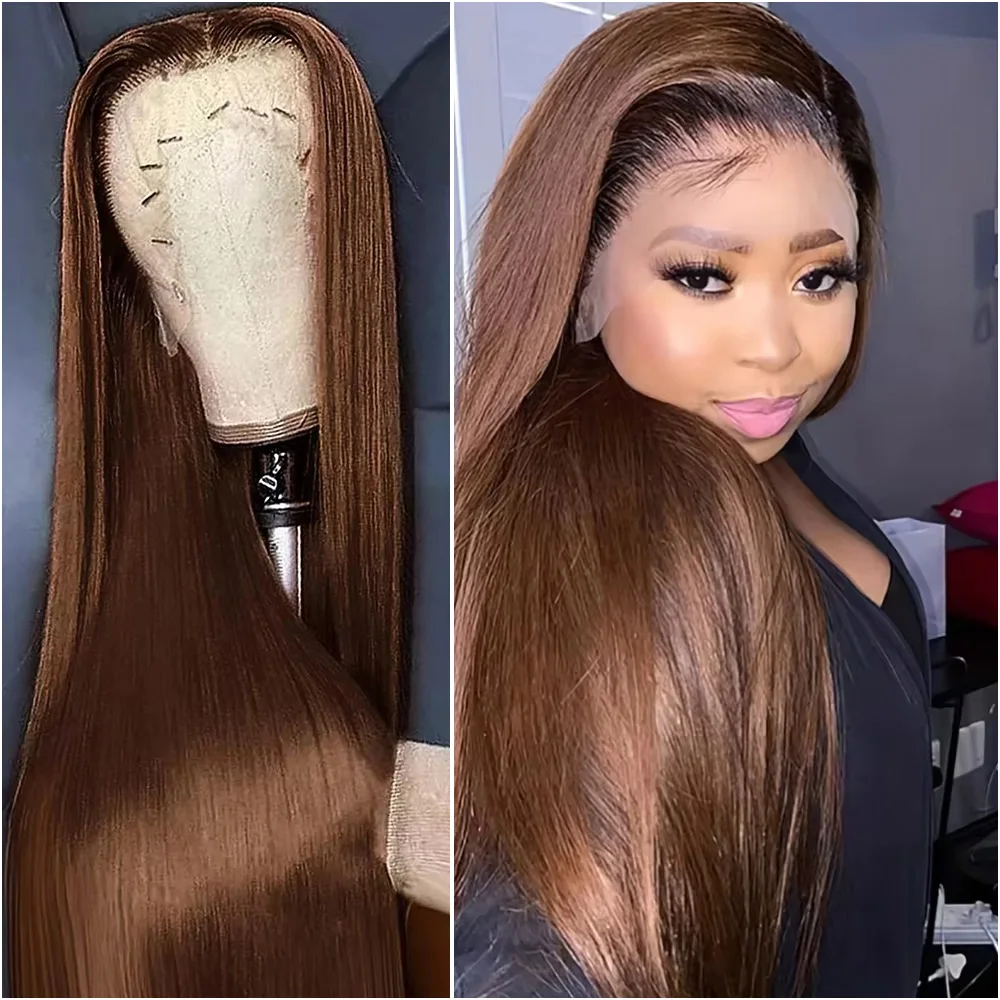 40 en marrón Chocolate 13x6 pelucas de cabello humano con encaje Frontal brasileño recto 13x4 HD peluca Frontal de encaje 200% prearrancado para mujeres