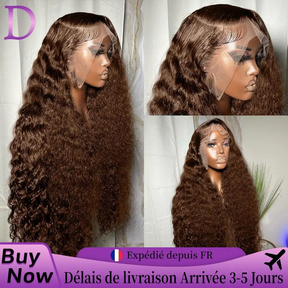 Pelucas de Cabello Humano con Frente de Encaje 13x4, Color Castaño Rizado, para Mujer, Ondulado Profundo Color Castaño, Pelucas con Frente de Encaje HD 13x6