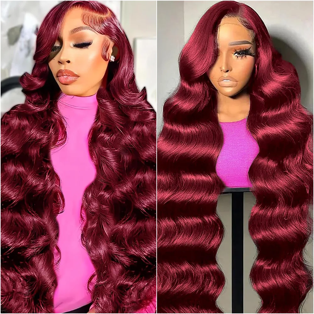 Borgoña 13x6 HD encaje Frontal peluca ondulada 99J transparente 13x4 encaje 30 40 pulgadas frente 100% pelucas de cabello humano para mujeres prearrancadas