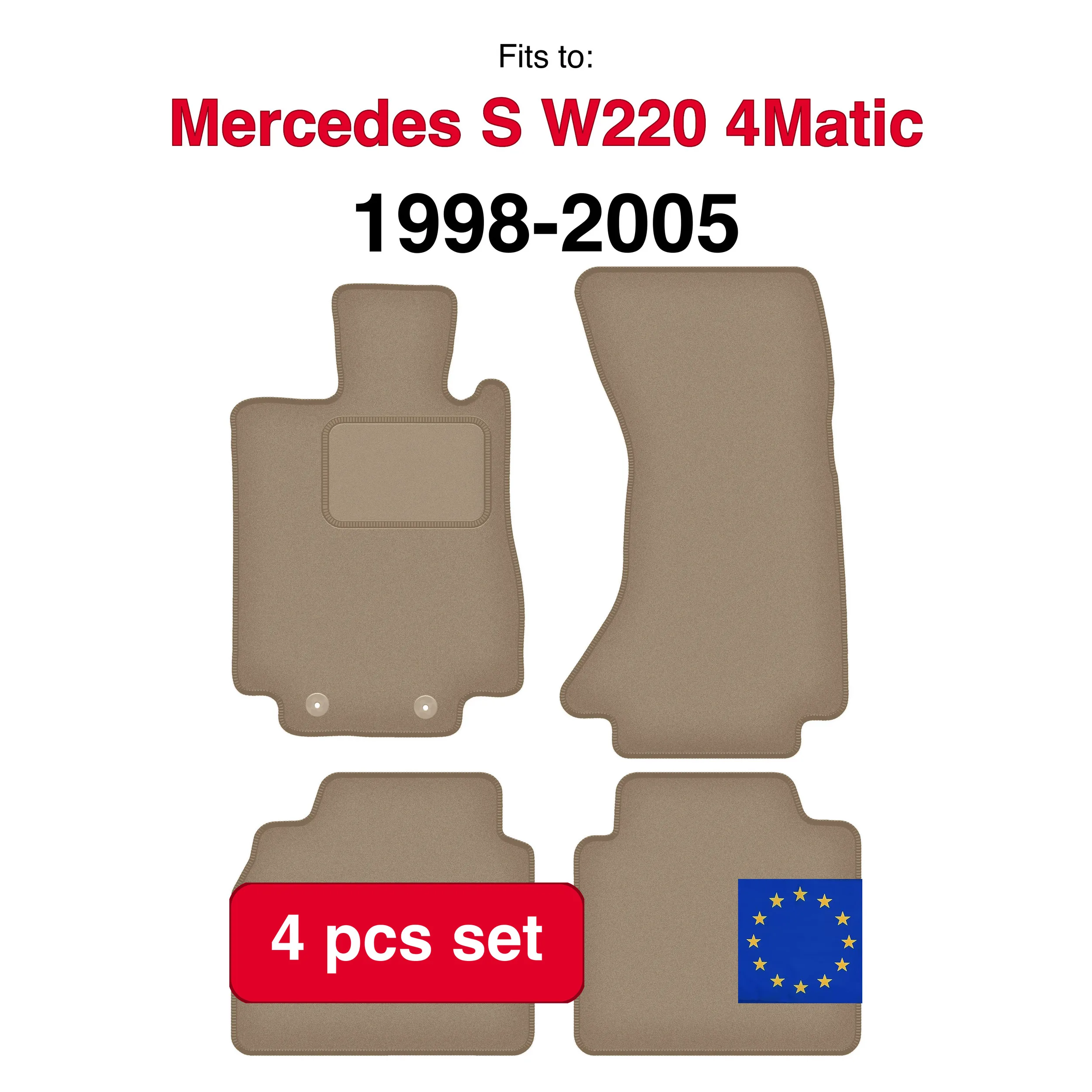Alfombrillas de terciopelo para coche Mercedes S W220 4Matic largas (1998-2005) -beige (4 uds)