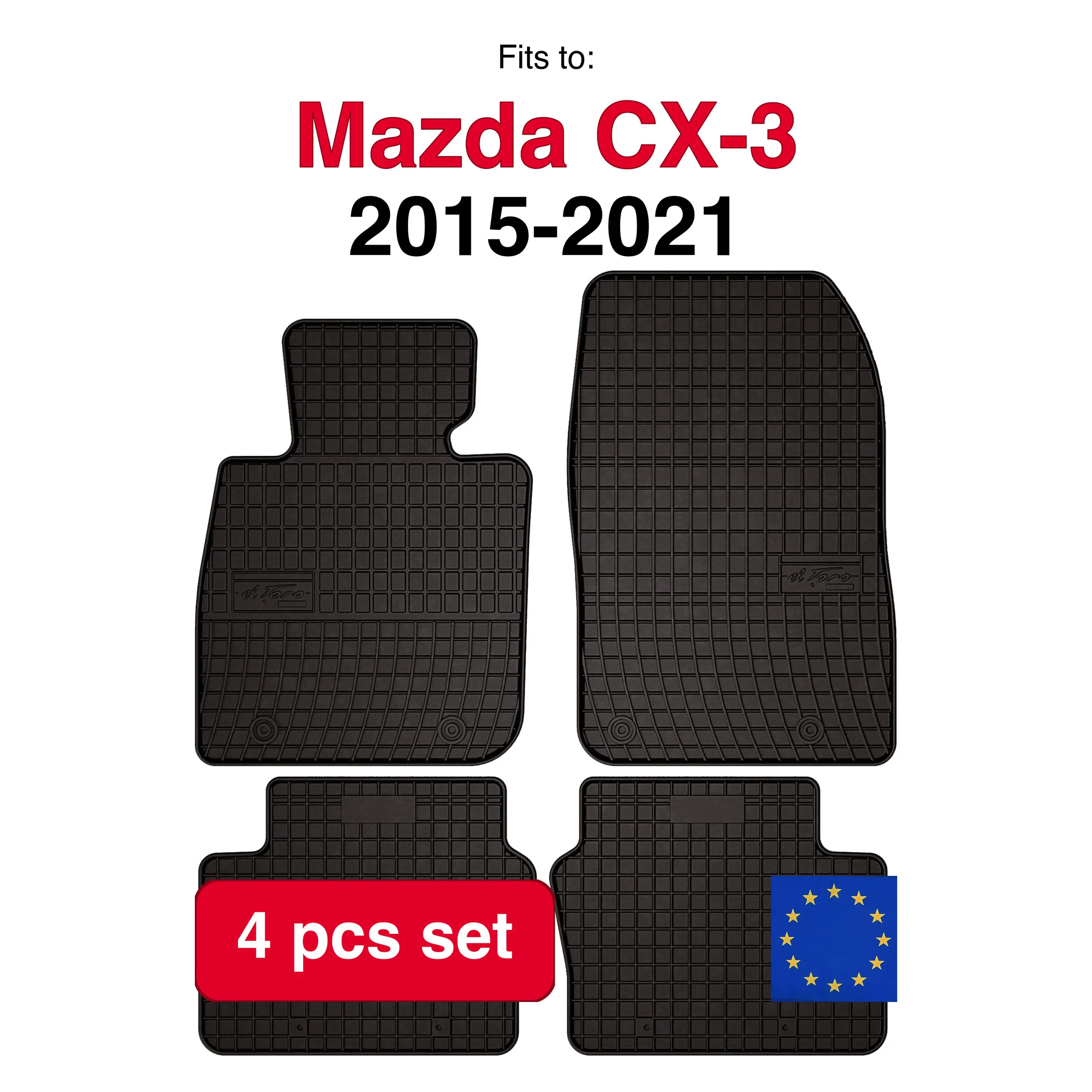 Alfombrillas de goma para Mazda CX-3 crossover (2015-2021) - Ajuste negro (4 piezas)