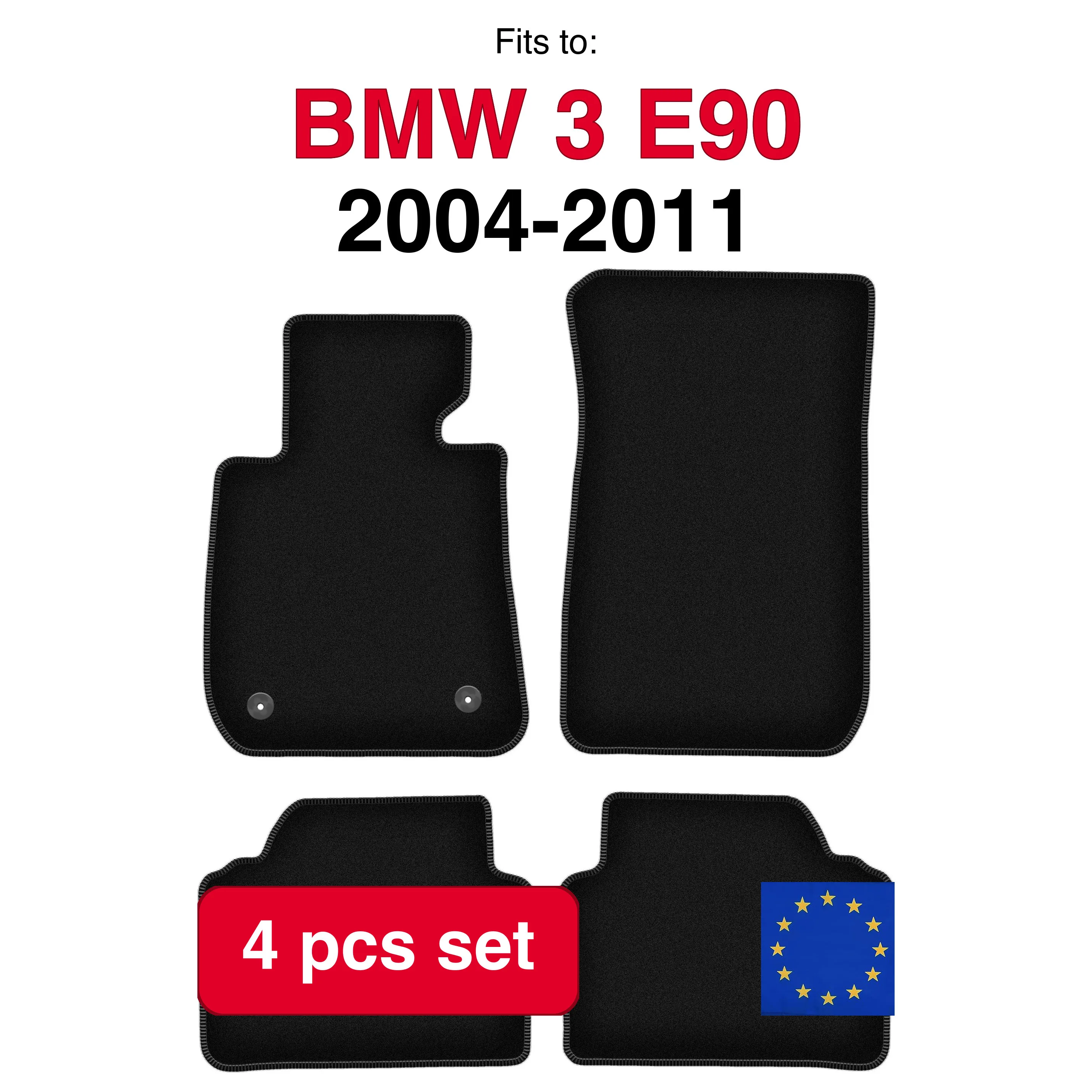 Juego de alfombras de terciopelo para BMW 3 E90 sedan (2004-2011) -Negro (4 piezas)